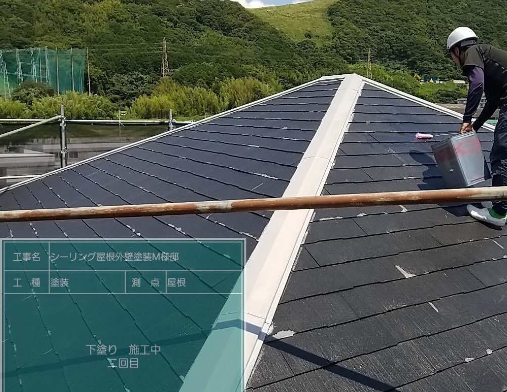 外壁や塀でも同様ですが、建材の種類や劣化の状況次第では、通常より下塗り材を多く吸い込んでしまうことがあります。下塗り材は接着剤のような役割をしているので、必要以上に塗料を吸い込んでしまうと下地材としての役割を十分に発揮できなくなってしまいます。今回は吸い込みを考慮し下塗りを2回行うことになりました。