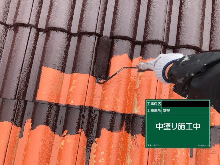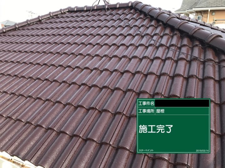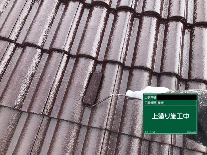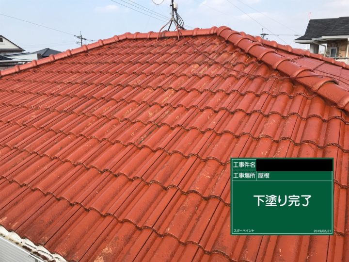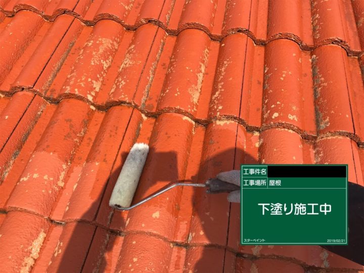 この瓦はモニエル瓦というものです。 表面に特殊な膜が形成させてますので、剥がれてこないように専用の下塗り材を使用します。