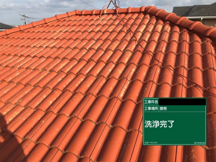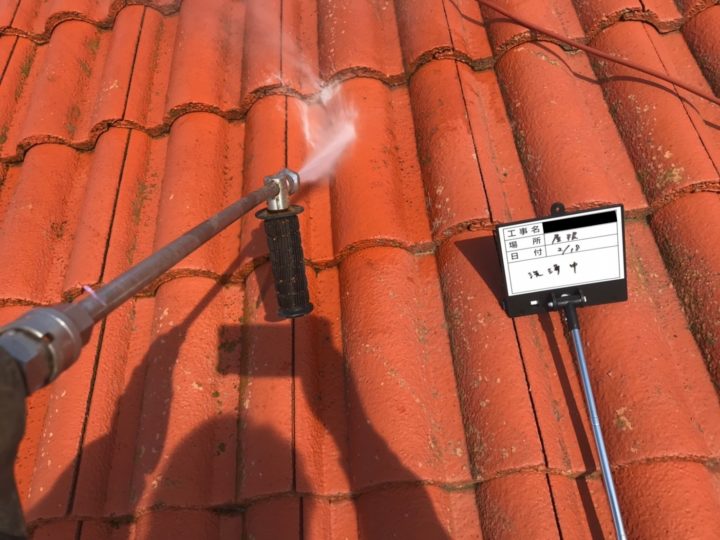 屋根も一気に洗い流します。 この屋根、実は特殊な瓦です。
