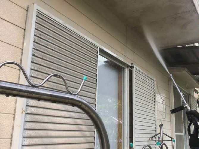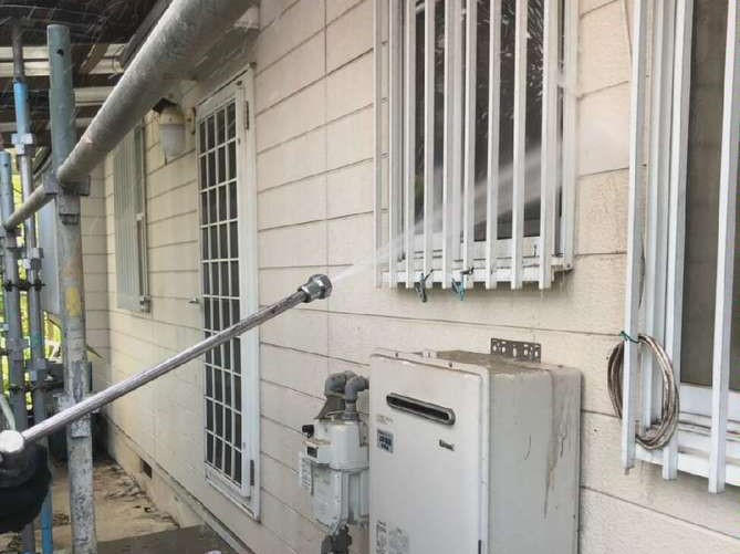 外壁のカビやコケをしっかりと高圧のお水で洗い流します!