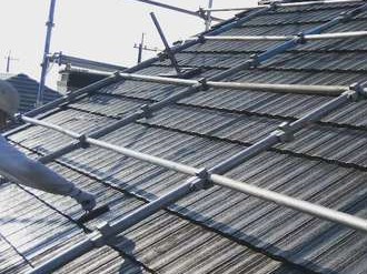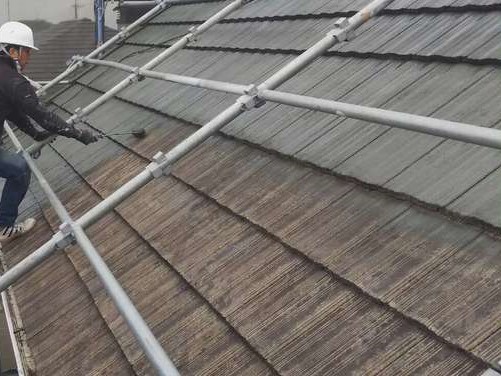 お屋根の高圧洗浄後、しっかりと乾いた事を確認し、下塗り作業に入ります。 外壁同様、塗料の密着度を高めるために下塗りをしていきます。