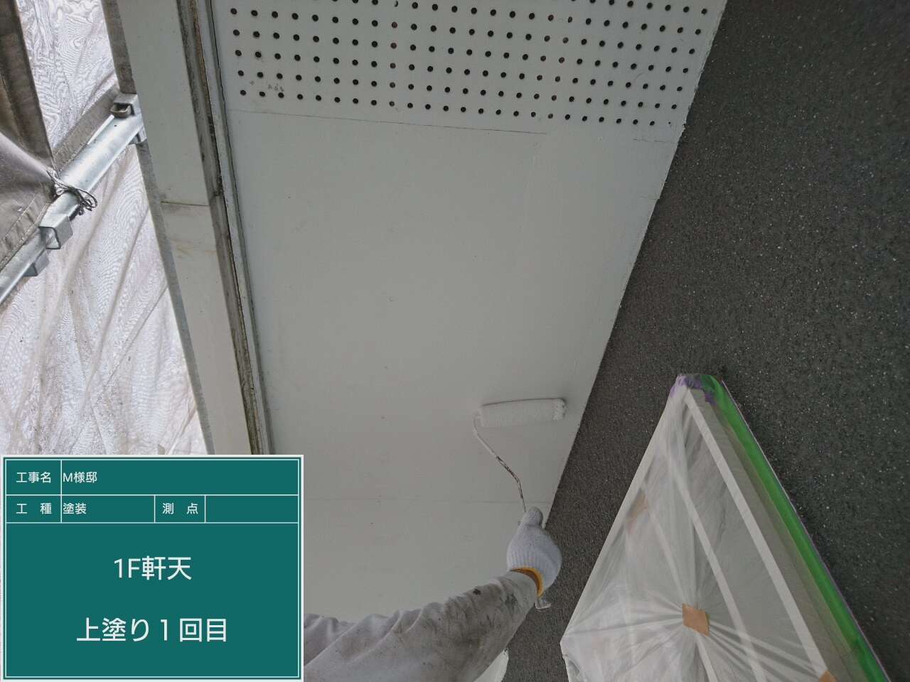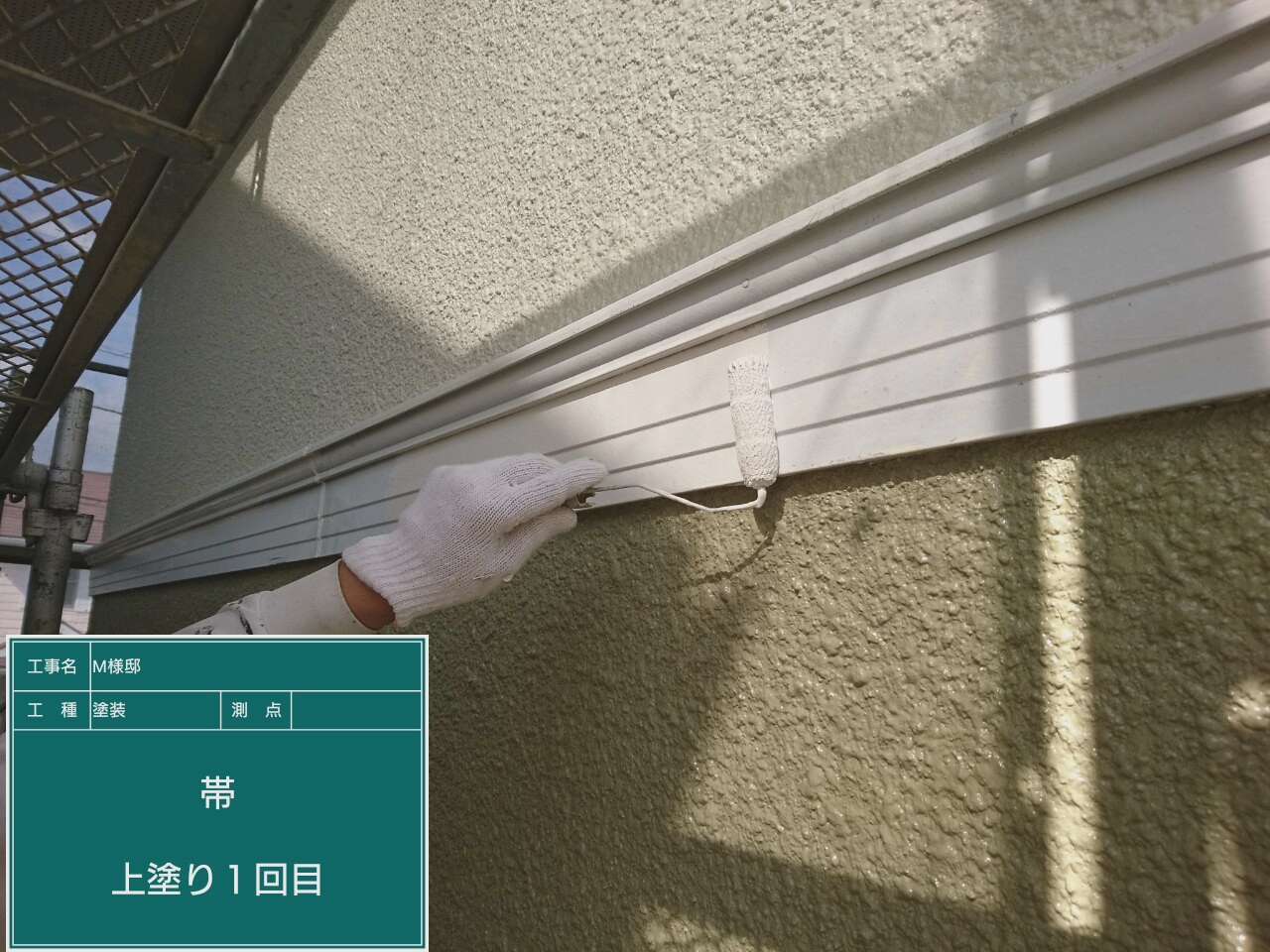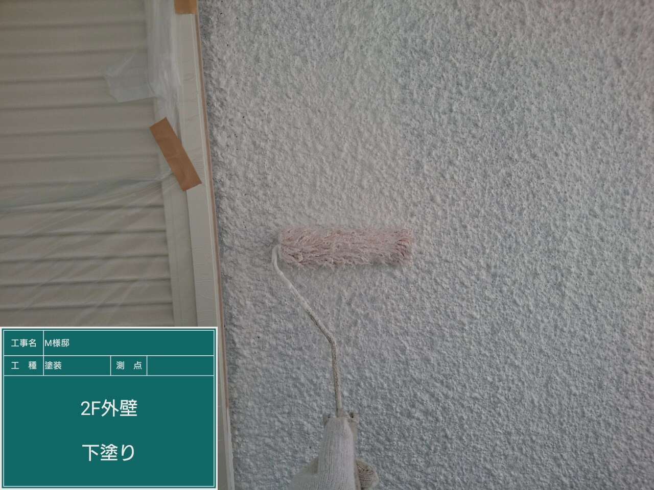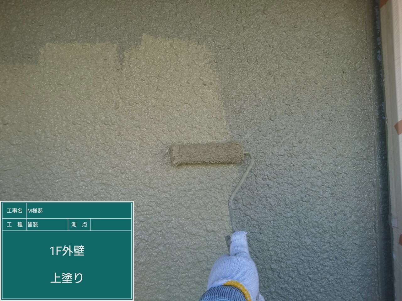 1階部分の中塗りです。中塗りは塗膜の厚みを適切に作るために必須の工程。"抜く"ことはあり得ません!