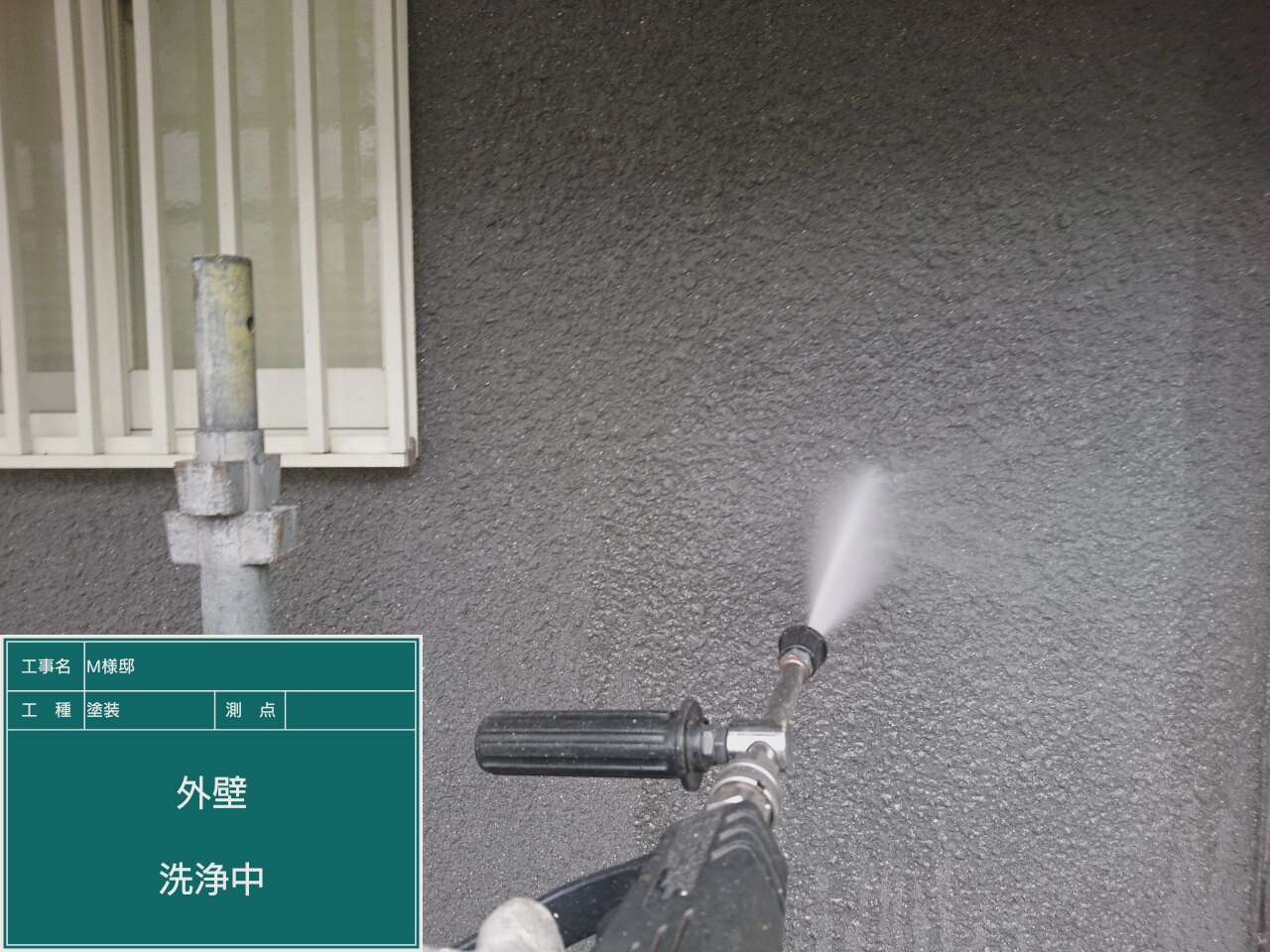 外壁もくまなく洗浄します。洗浄後は乾燥の時間を取ります。天候にもよりますが、しっかりと乾かす意味もあり、スターペイントでは基本的に洗浄した次の日から養生やシーリング、塗装などの作業に入っていきます。
