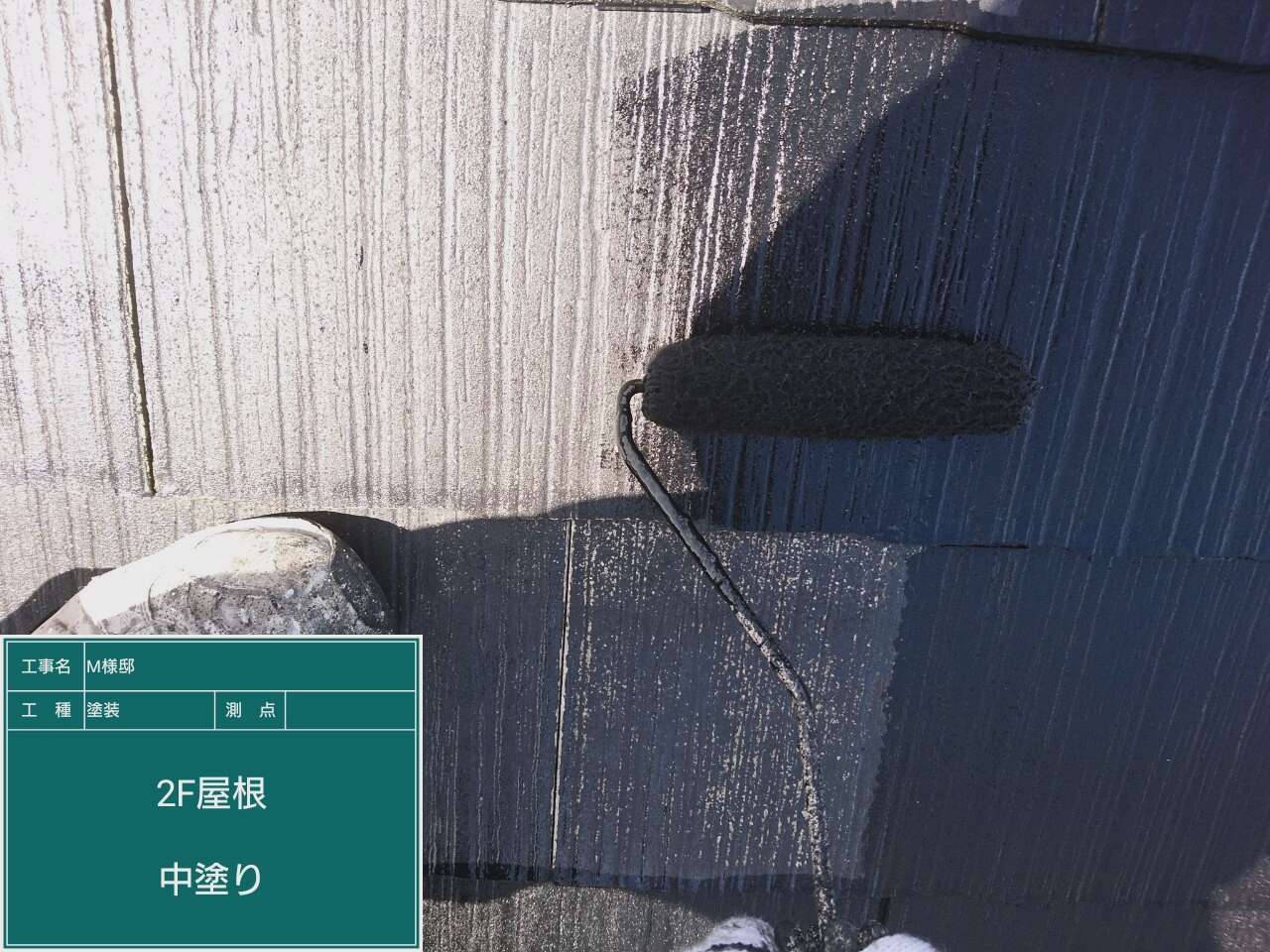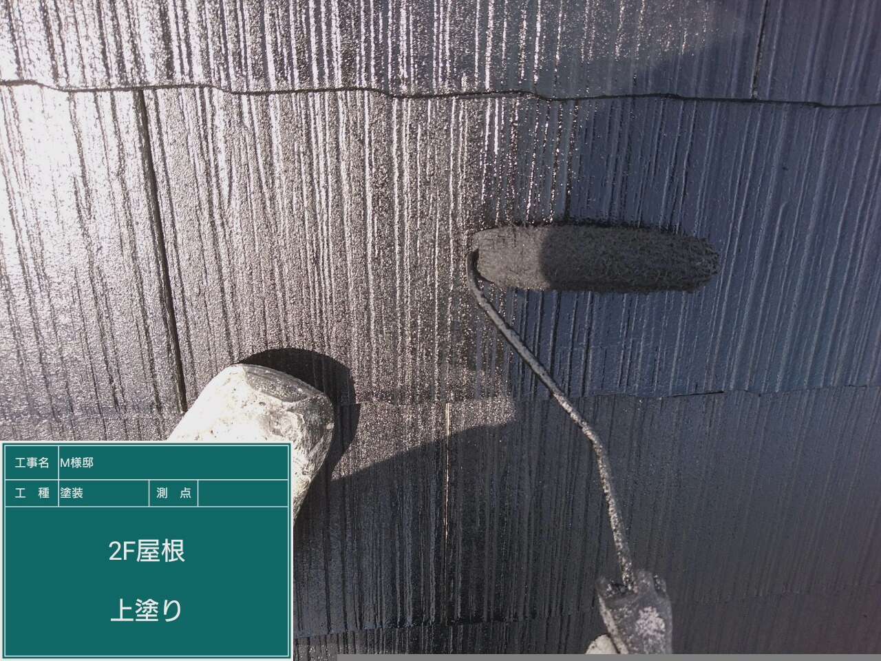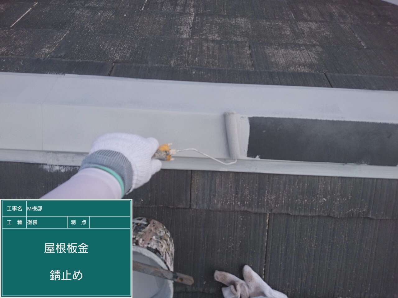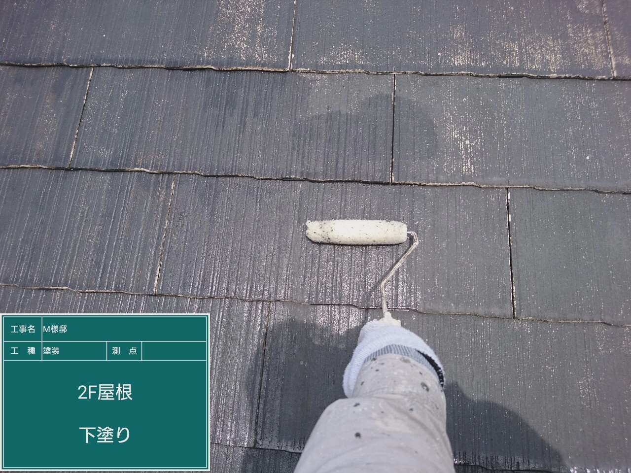 屋根の下塗り作業です。外壁同様に後の塗料の密着性を高めるために重要で、接着剤のような役割を果たします。