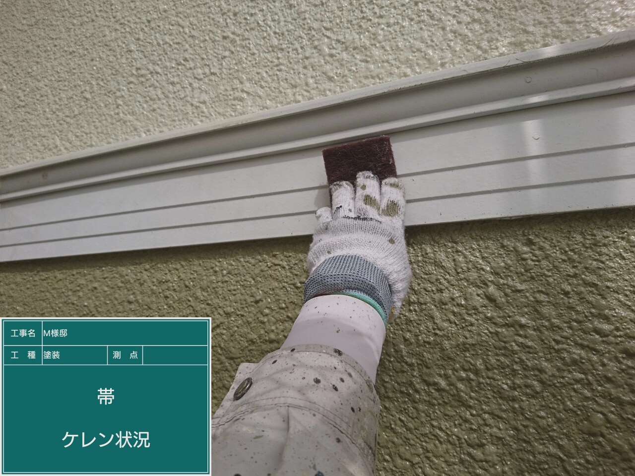 外壁の色分けにデザインの面でも重要な帯の部分。この部分は鉄部ではありませんが、ケレンして表面お凹凸を整えていきます。
