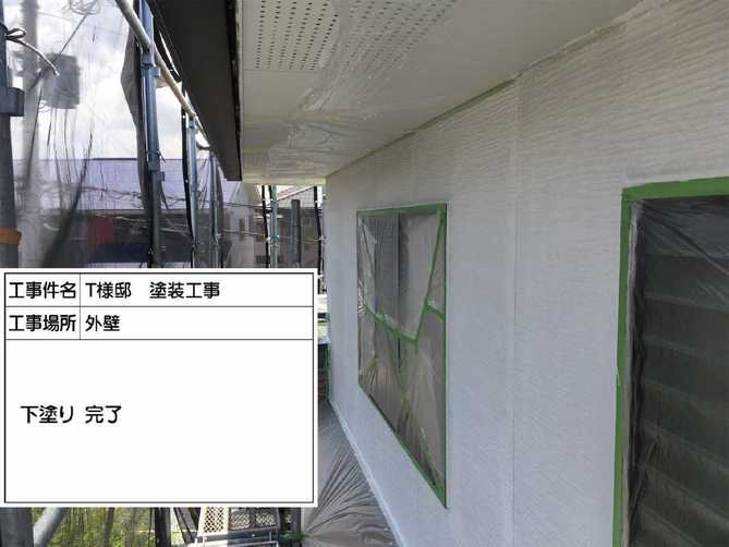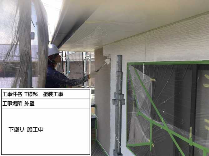 下塗り作業完了です! この工程で手を抜いてしまうと、塗料が密着せず塗膜剥離の原因となります。 注意が必要ですね!
