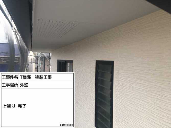 外壁上塗り施工完了です! 塗り残しやムラなく仕上がりました!