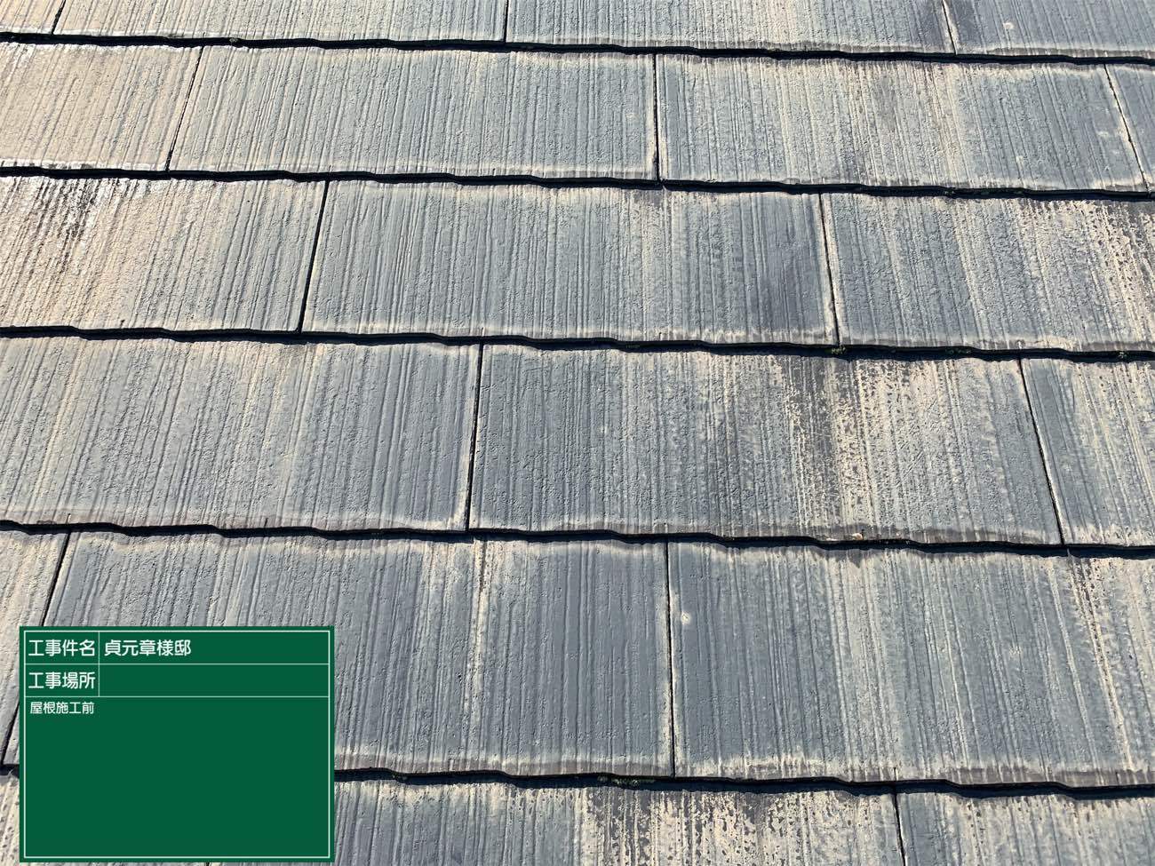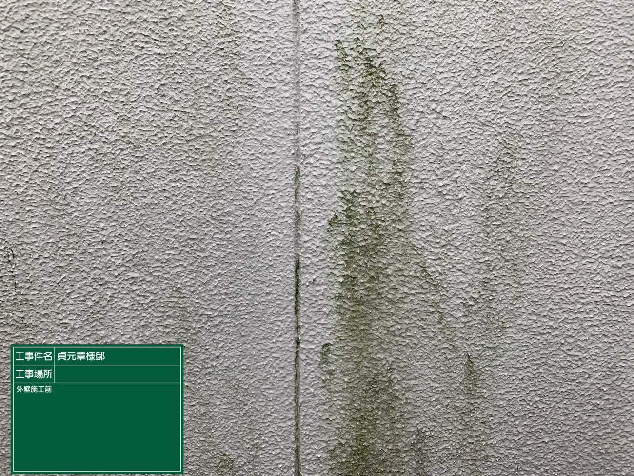 外壁の施工前の状況です。屋根なんかもそうですが、住宅の劣化は環境に左右されて東西南北のそれぞれで劣化状況が変わることがあります。それによって塗料を使い分けることはしませんが、日当たりの具合で一面だけ苔が酷くついたりすることもあれば、部分的に劣化が早まることもあるので要注意。