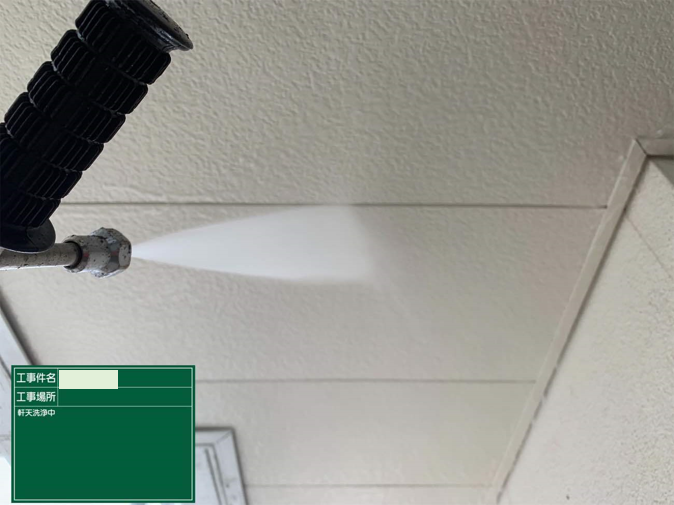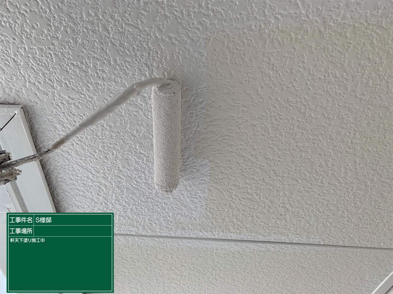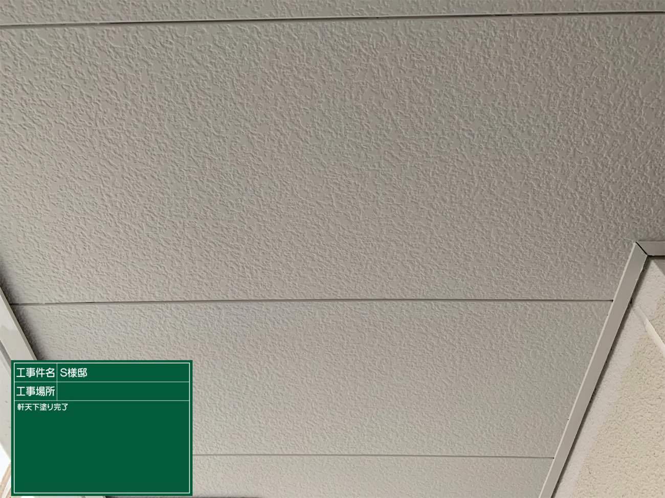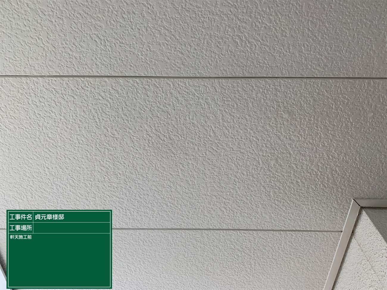 施工前の様子です。軒天は意外にも照り返しや湿気などで劣化が起こる場所です。見た目は綺麗な状態を保っていることも多いですが、つやがなくなり防水性能はゆっくり確実に落ちていきます。外壁・屋根塗装の際にはここもしっかり塗装しましょう。