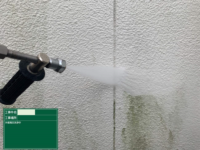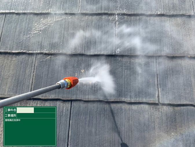 屋根もしっかりと高圧洗浄していきます。屋根は紫外線を最も浴びやすい場所なので、その分劣化も早いです。雨などから直接室内を守ってくれる屋根なので、しっかり定期的なメンテナンスしていきたいですね!