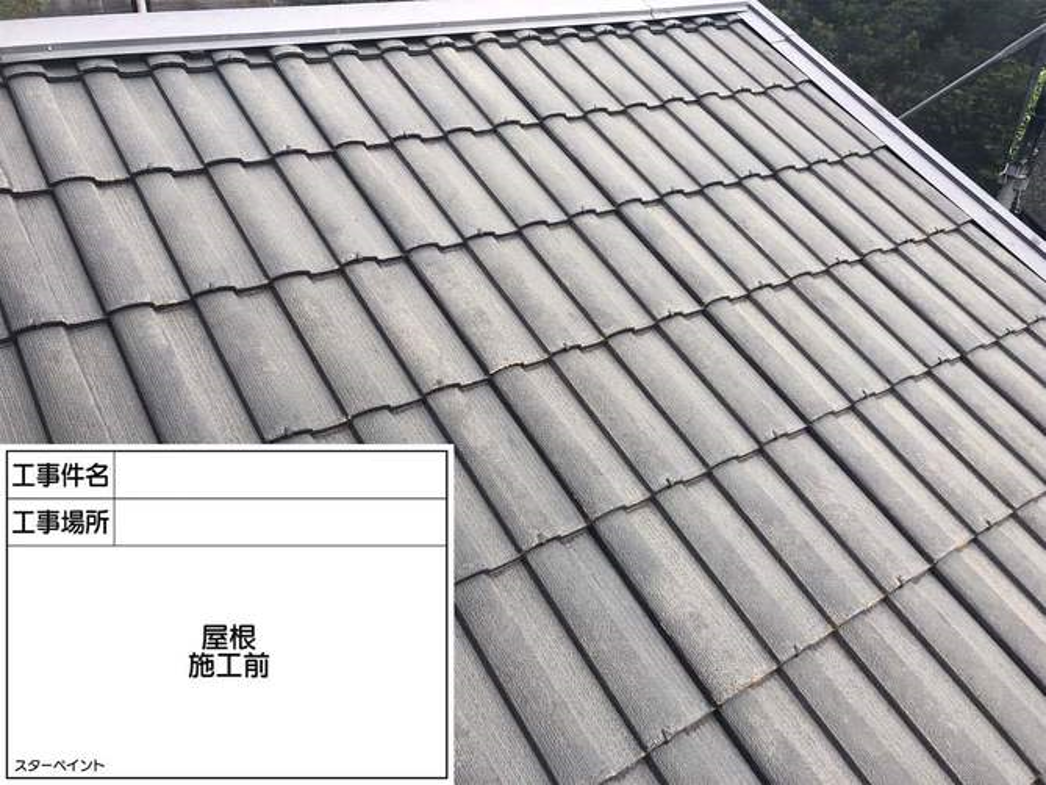 珍しい形のセメント瓦です。セメント瓦は雨水に弱いという性質があるため、塗装による保護が大切になってきます。 表面の塗膜も劣化しているのか色褪せていますね。。。