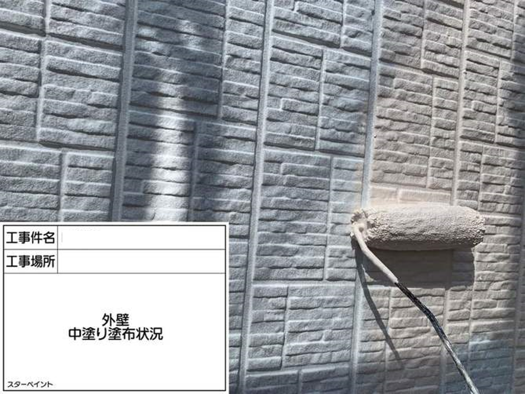中塗りには、上塗り材の補強や、平滑な下地をつくる役割があります。