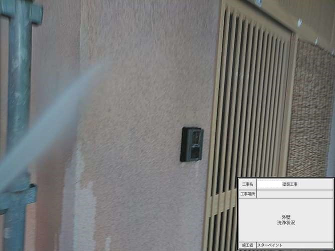 高圧のお水で外壁の汚れをきれいに洗い流します。