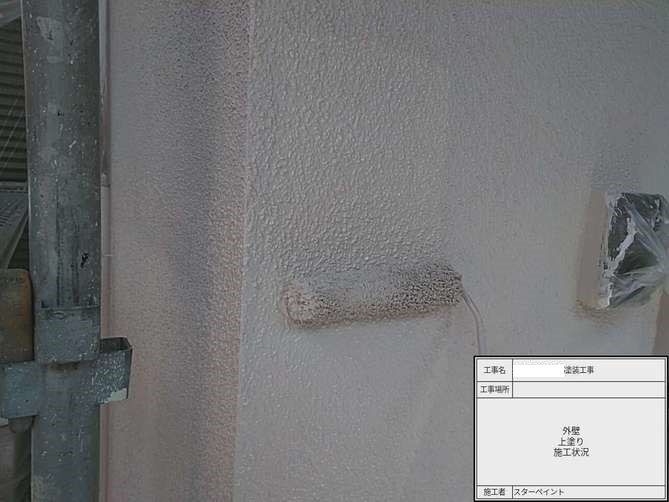 耐候性の高い塗料で仕上げていきます。 上塗り作業は見た目はもちろん耐候性に直接かかわる大事な工程です。 丁寧に仕上げます。