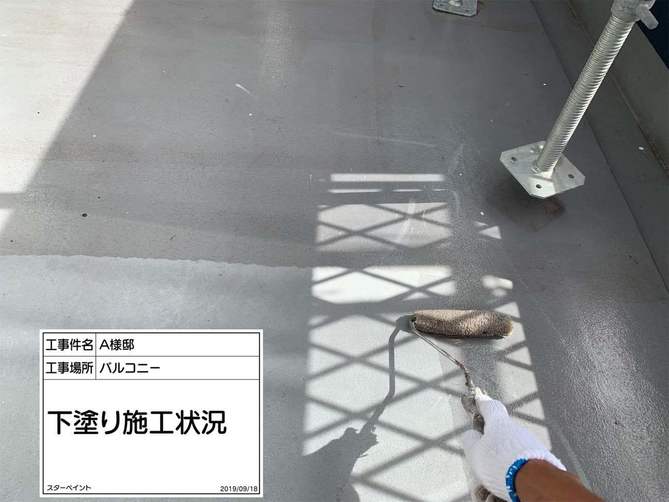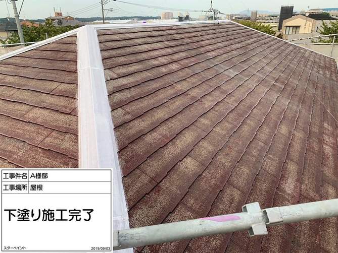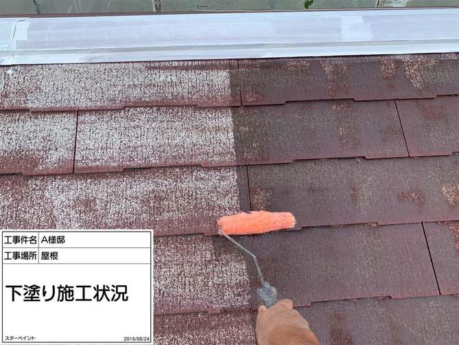 お屋根が乾いているのを確認し、下塗り作業に入ります。
