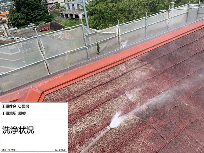 お屋根のコケや藻、カビなども徹底的に洗い流します。