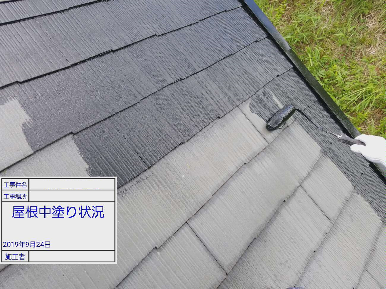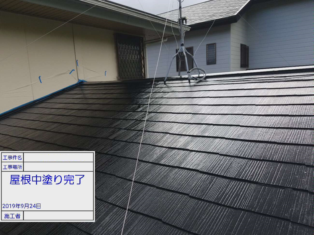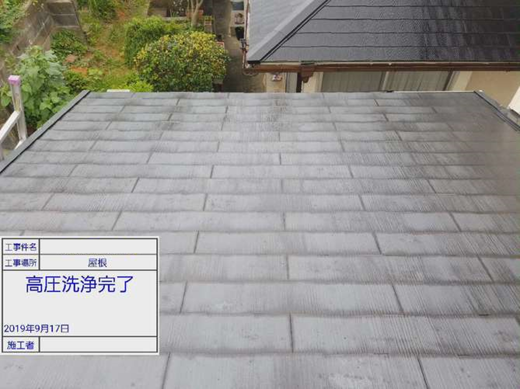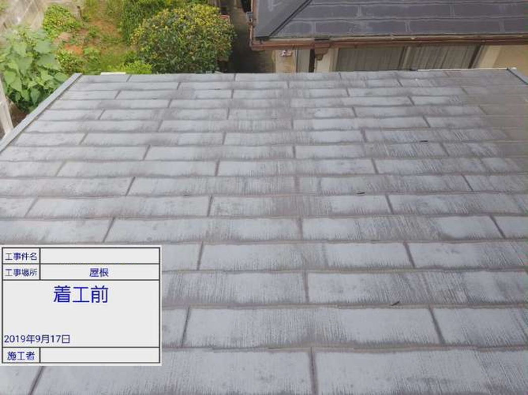 増築部分の屋根は色褪せやチョーキングなど見られていましたが、母屋とのバランスも取り丁寧に仕上げさせていただきました。