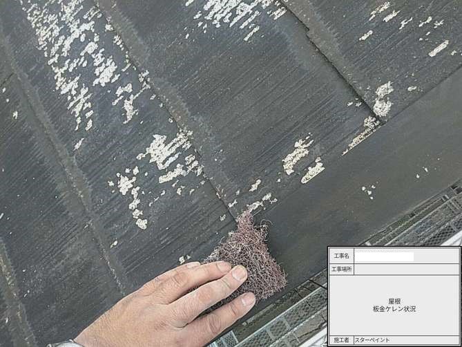 お屋根の傷んだところもケレン作業で剥がれを落とします。