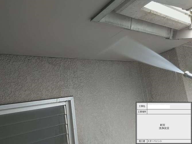 付帯部も同様、軒天もしっかりと洗い流していきます。