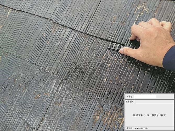 タスペーサーを取り付け、湿気を逃がし雨漏りの原因や腐食を防ぎます。