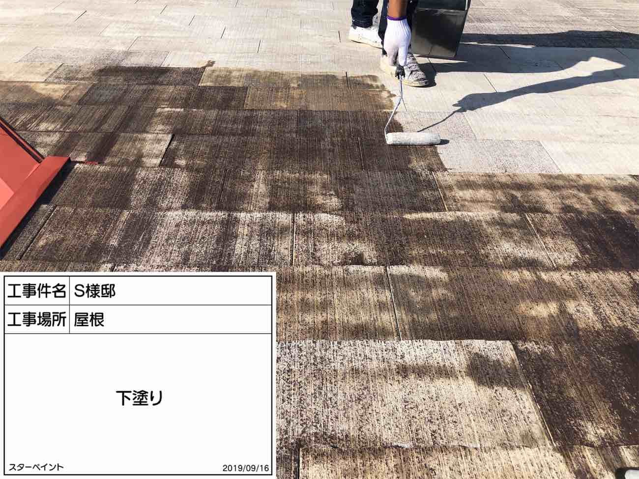 屋根 下塗り作業