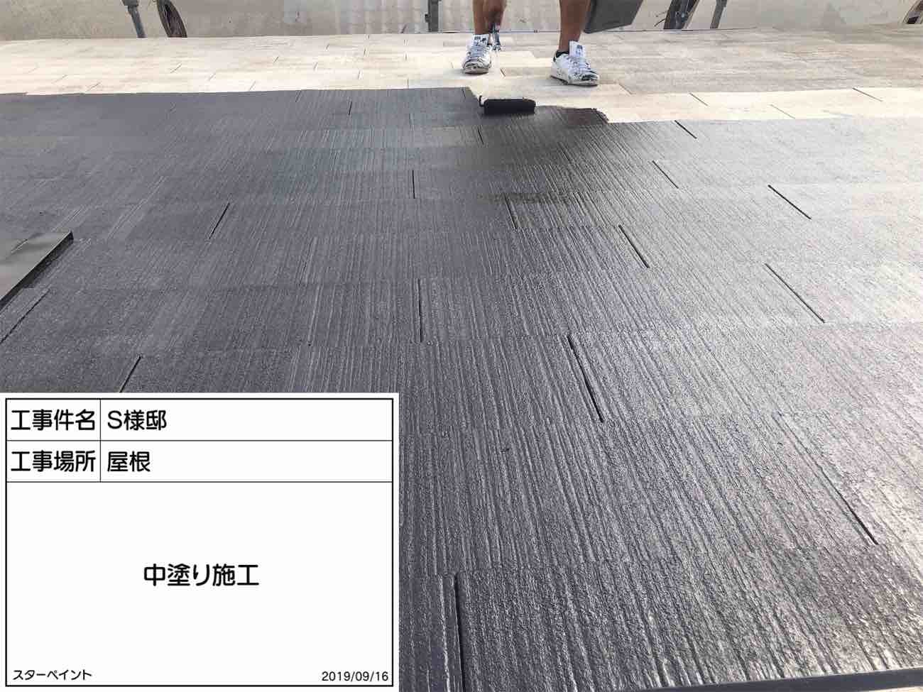 屋根 中塗り作業