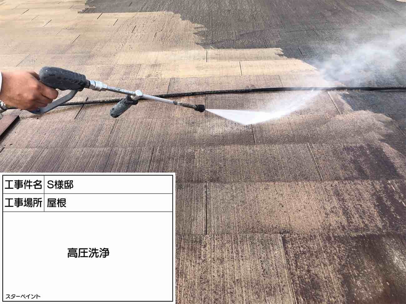 お屋根も同様、カビや藻、コケをしっかり洗い流します。