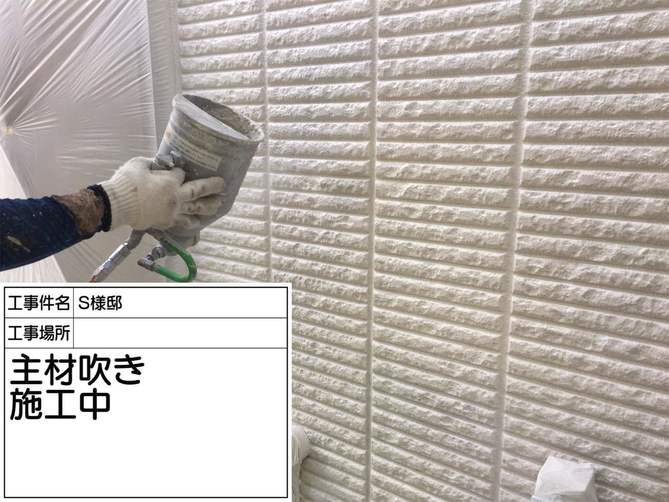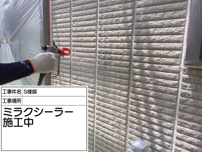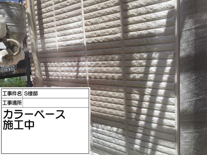 シーリングの肌合わせのためカラーベースを吹きつけていきます。