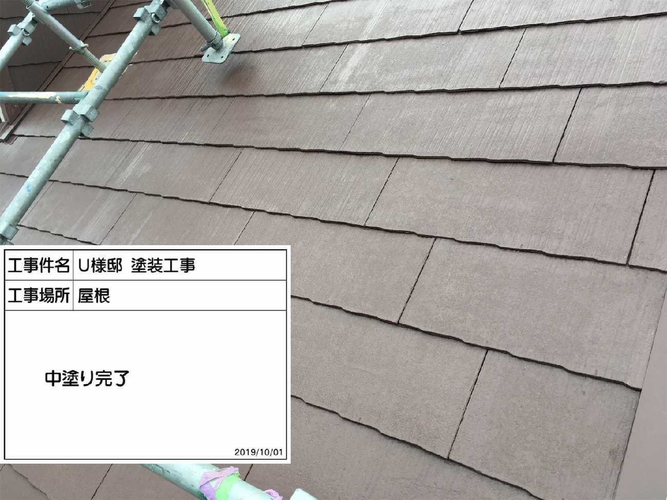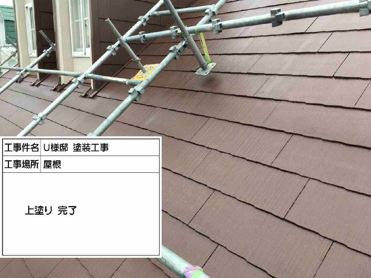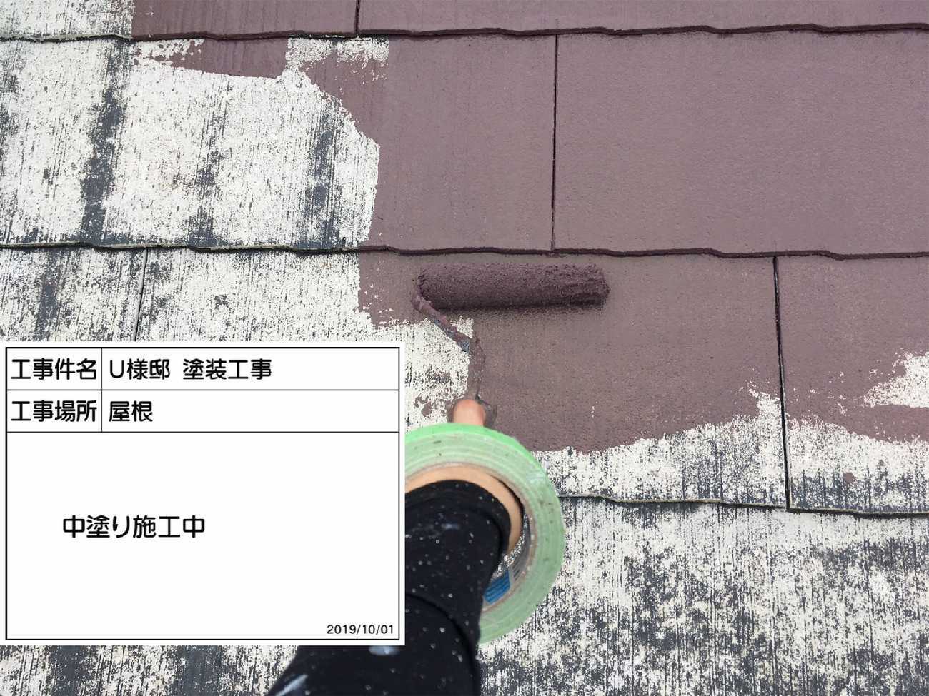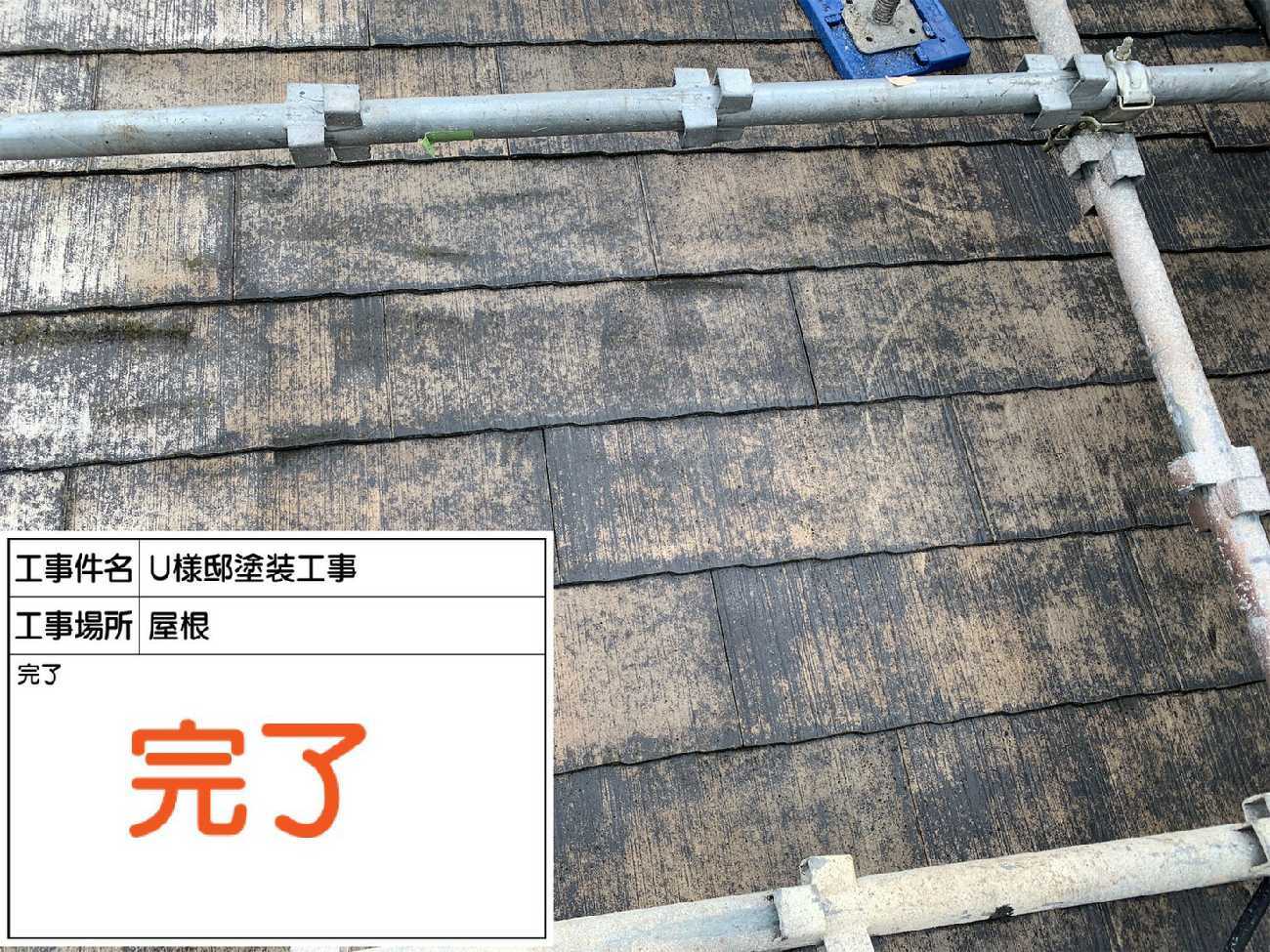 屋根の下塗り工程です。外壁と違い透明の下地材ですが、塗り残しのないように細部まで塗っていきます。