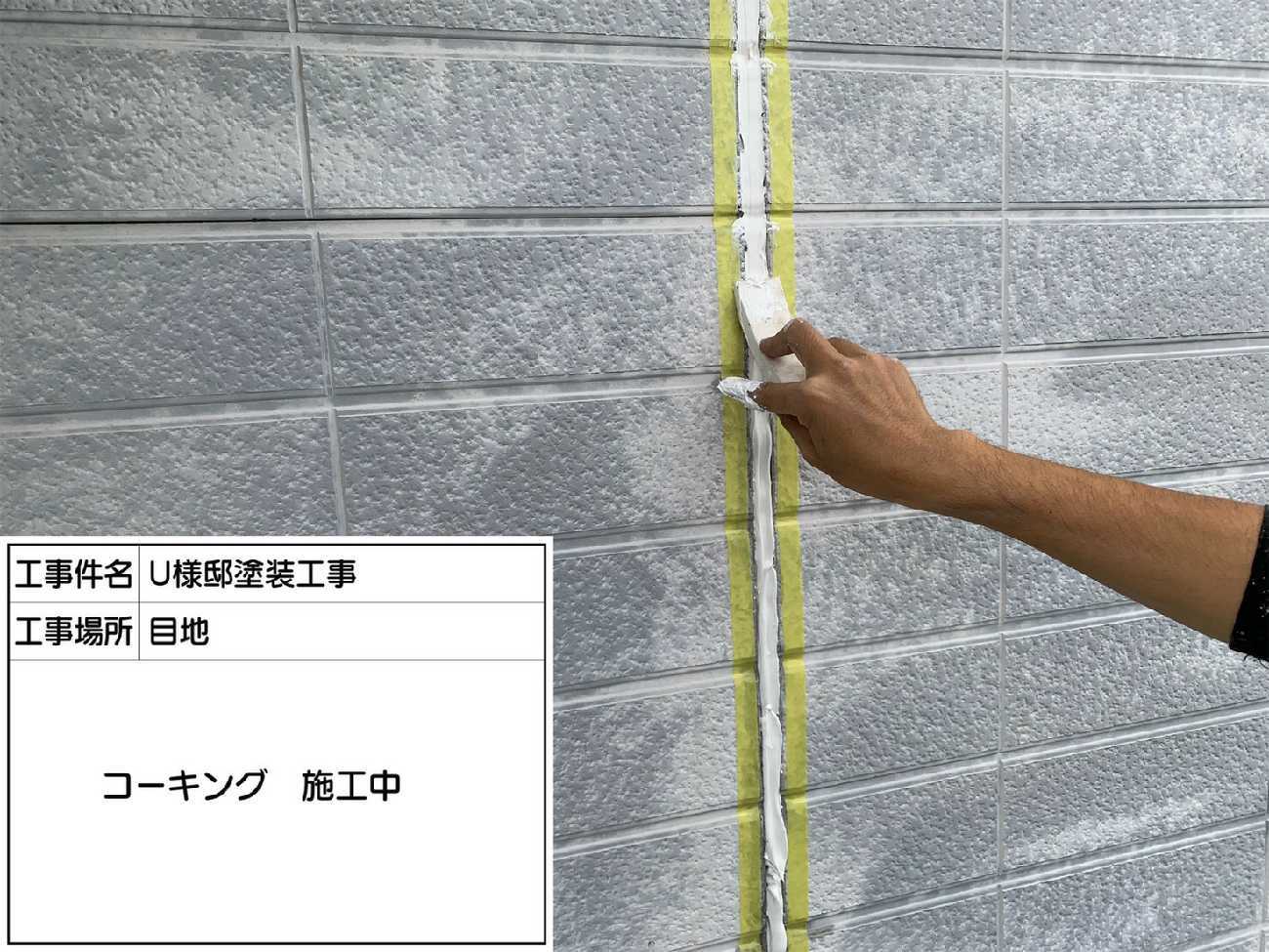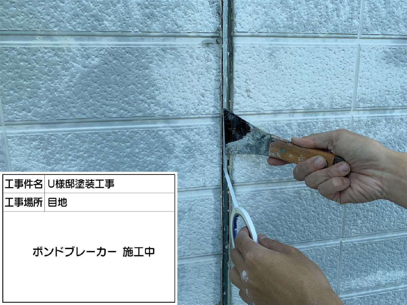ボンドブレーカーというのは三時の溝に挿入しているテープのこと。この日と工程があることで目地割れのリスクを軽減させることが出来ます。