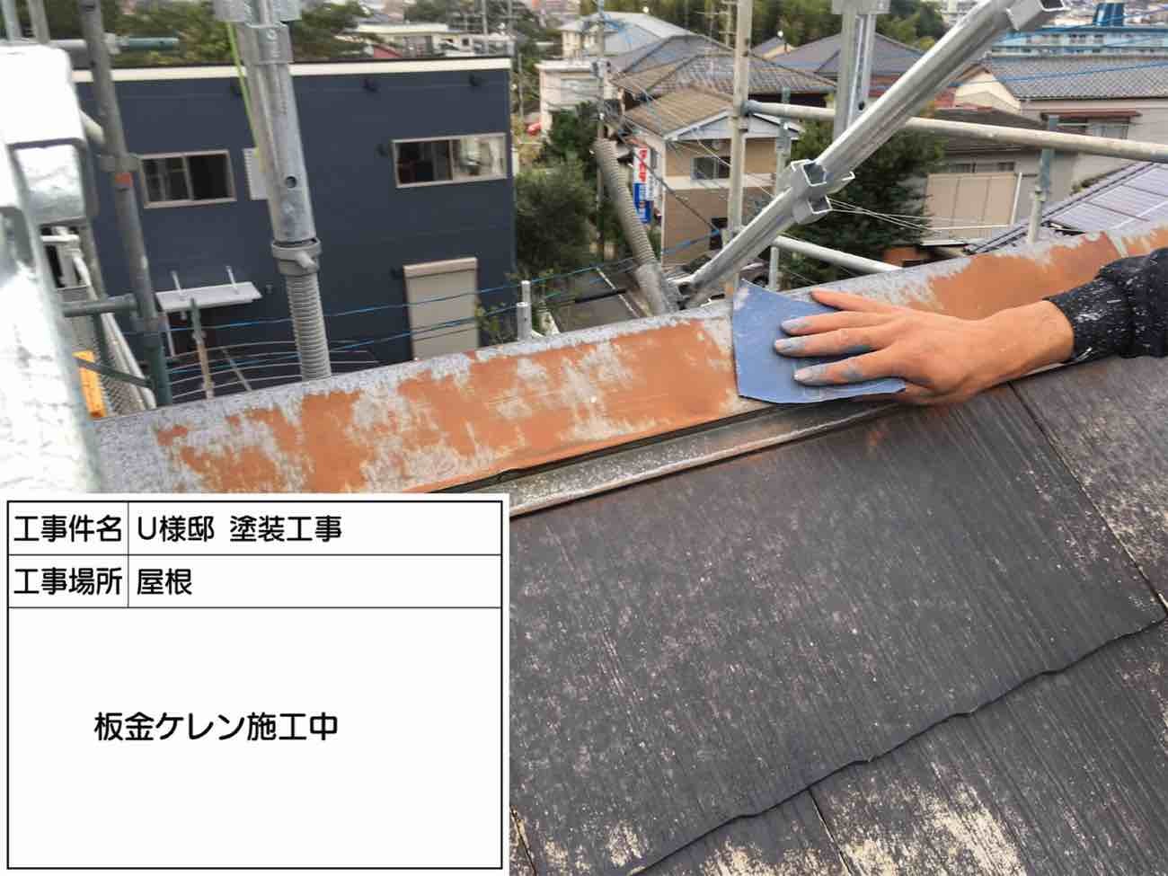 屋根に限らず、鉄部は総じて錆止めを塗ります、ケレン作業はその重要な下準備工程。細かな傷を付けながら表面をならして塗料の密着性を高めます。