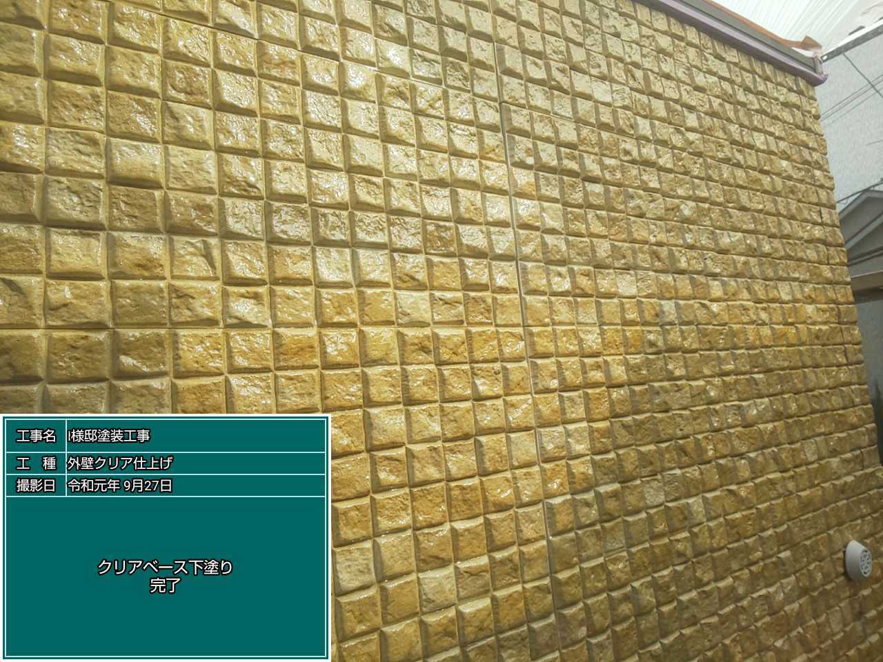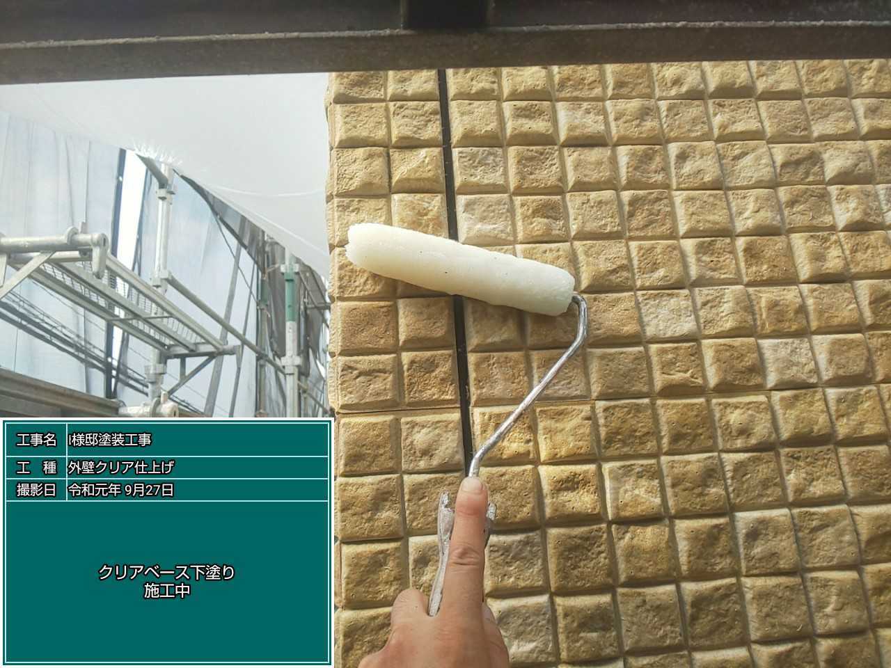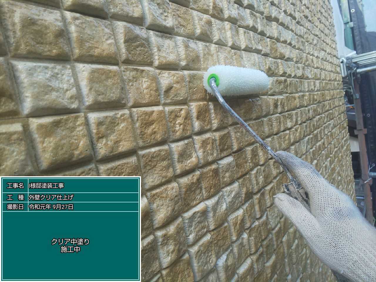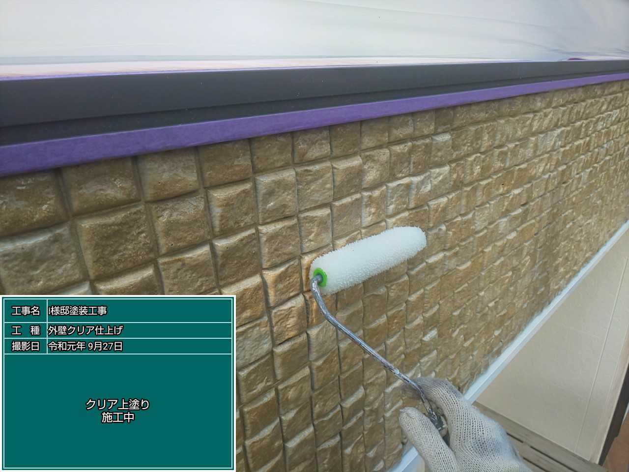 外壁のデザインを保つためにクリア塗料を塗っていきます。