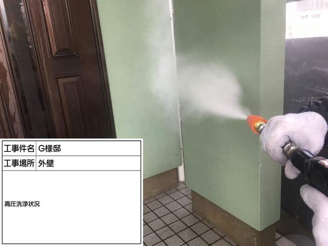 塗装する前に、高圧の水で汚れを落とし綺麗にしていきます。