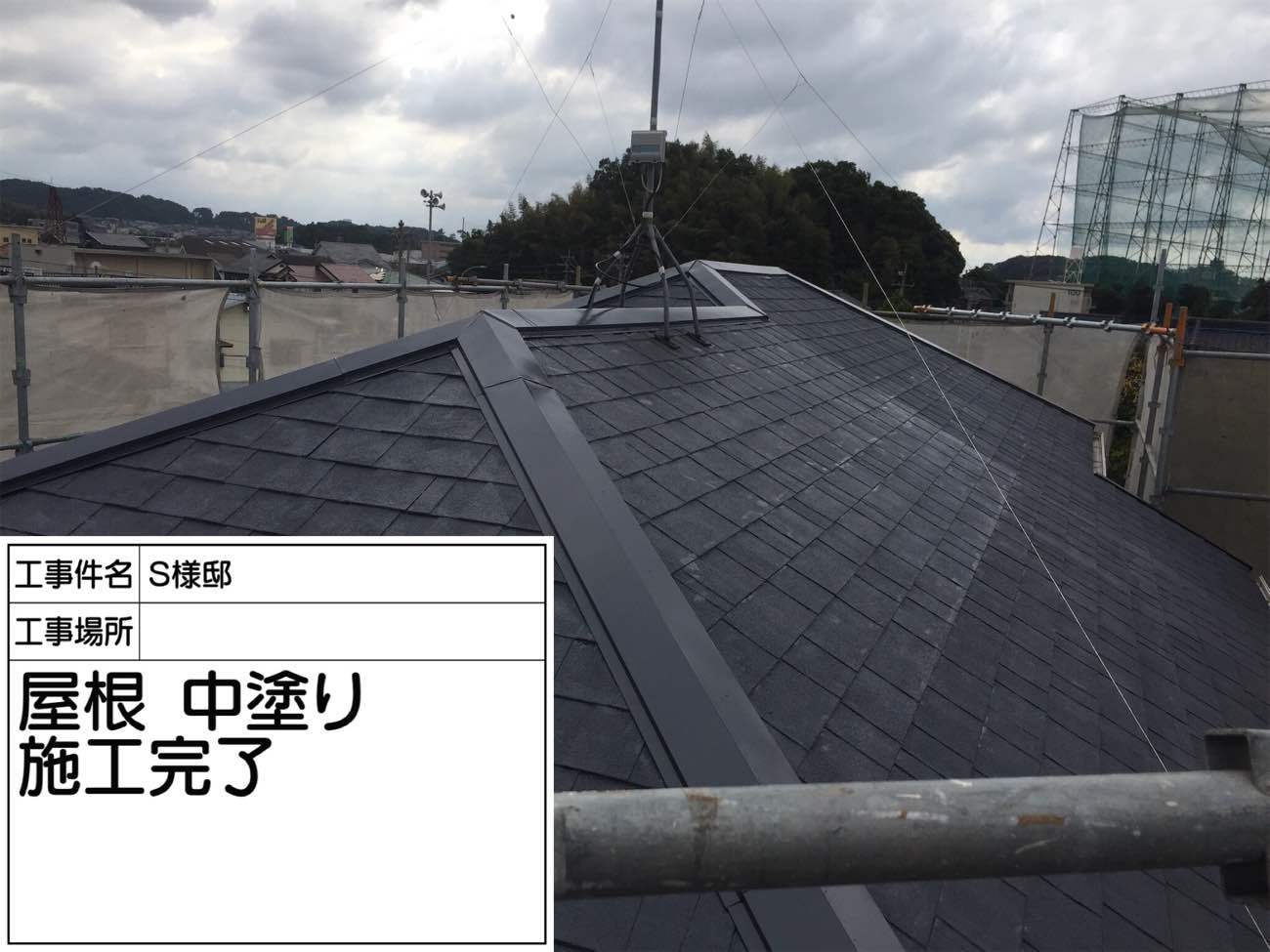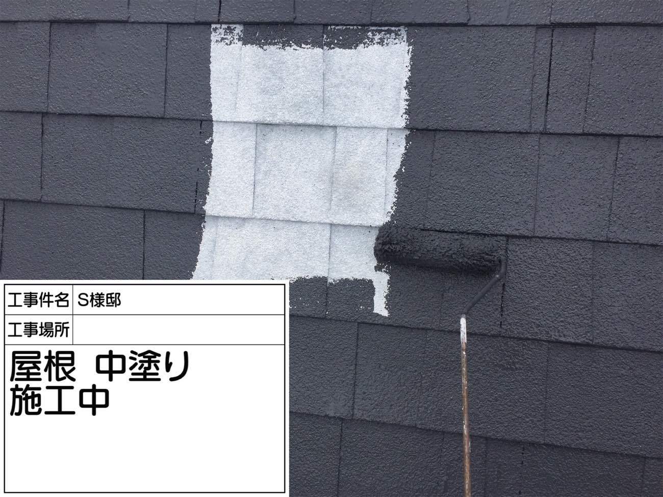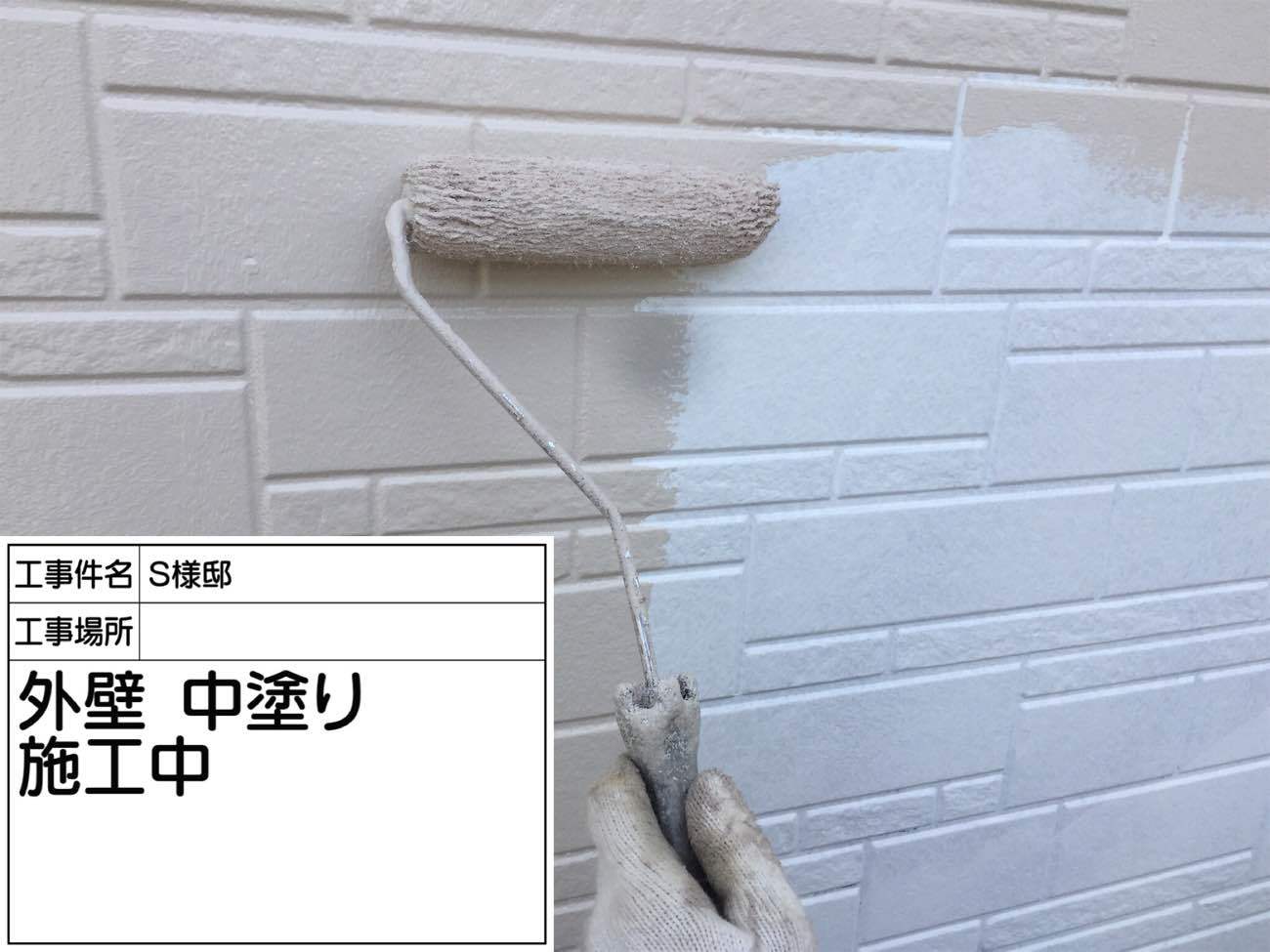 中塗りはきちんと施工しているか分かりづらい工程ですが、決して手は抜きません。塗り残しなく塗りますよ!