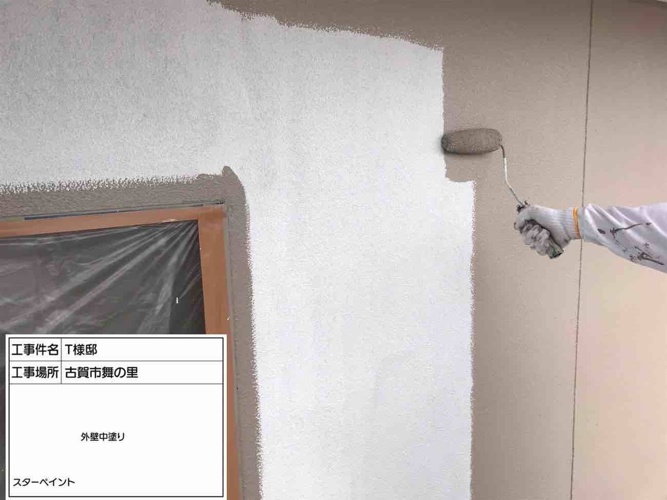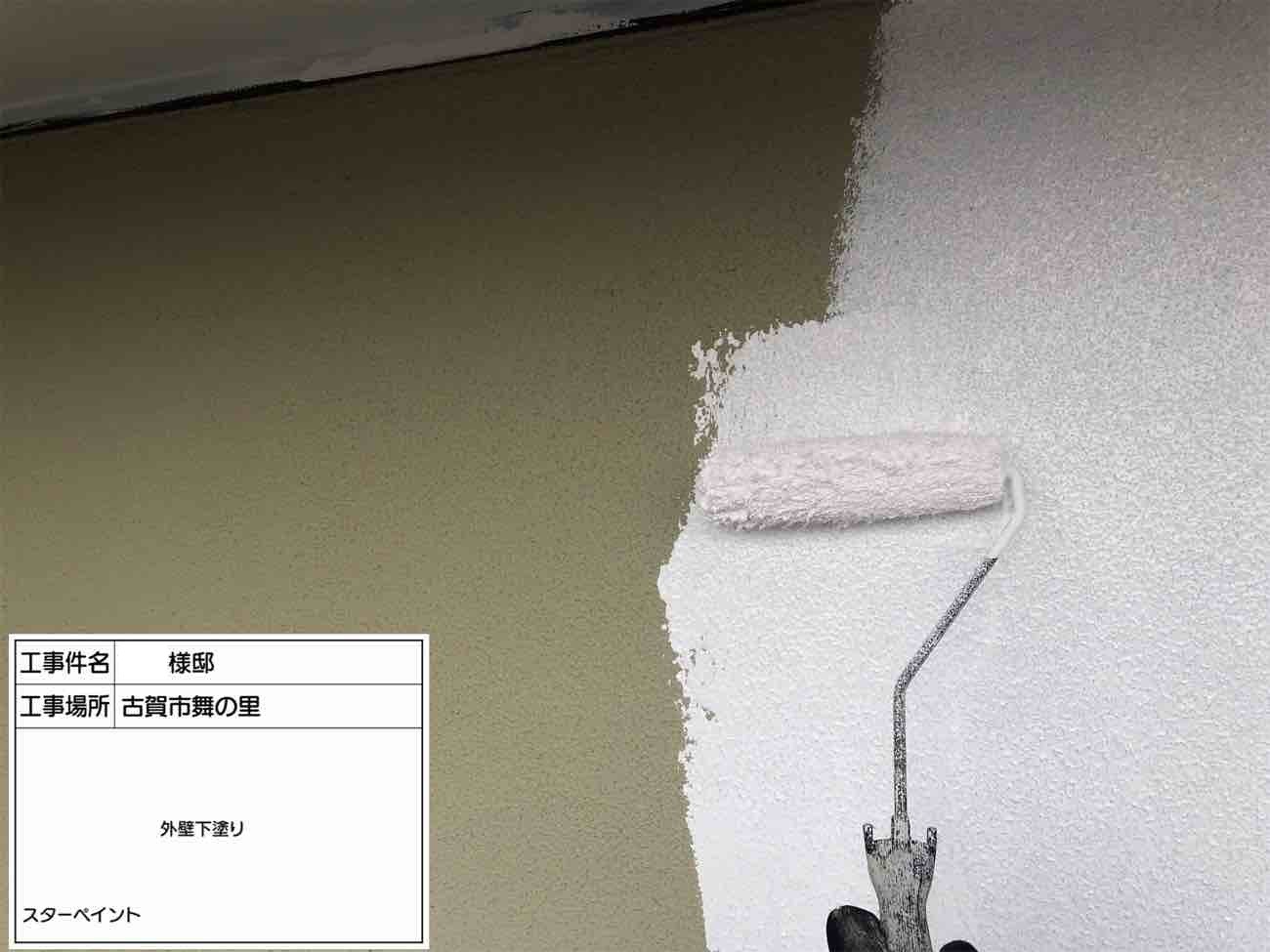 屋根の時と同じように、下塗りで密着度を高め、中塗りで厚みを持たせていきます。