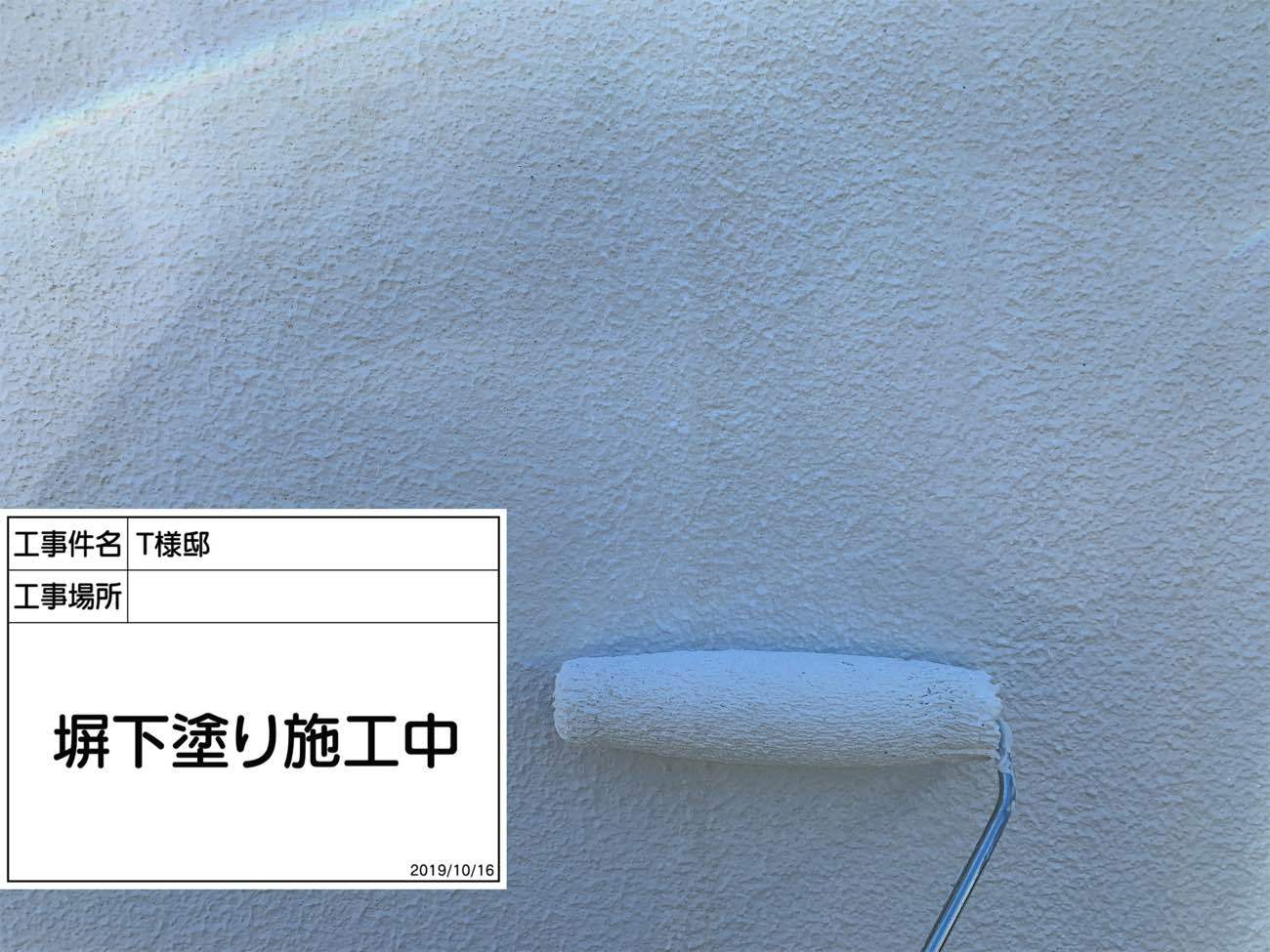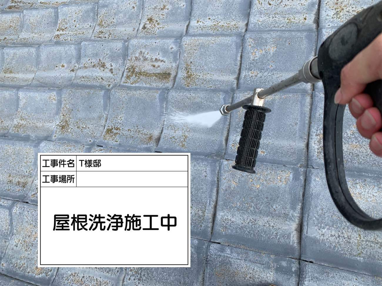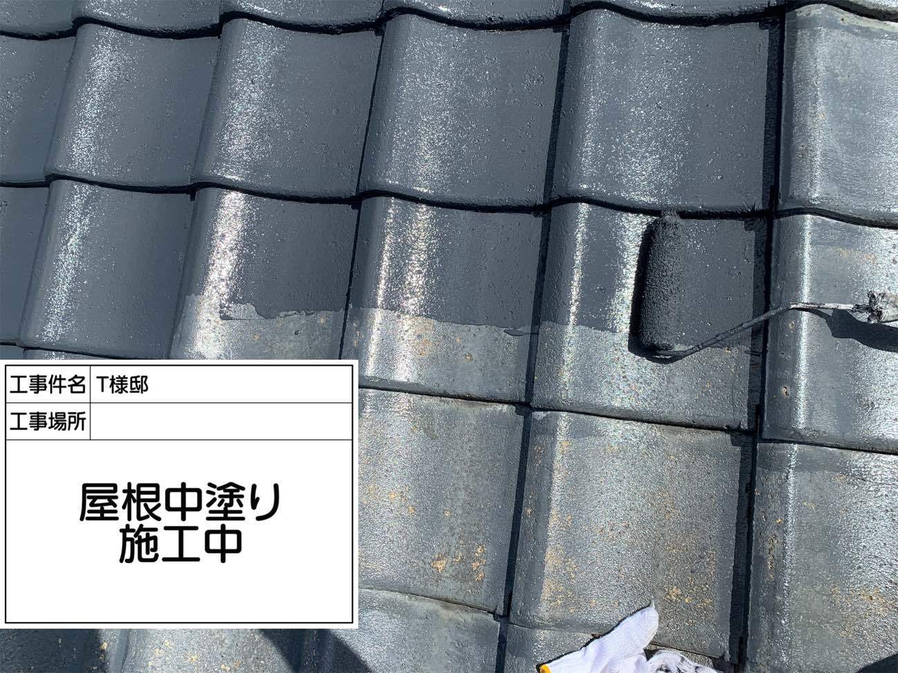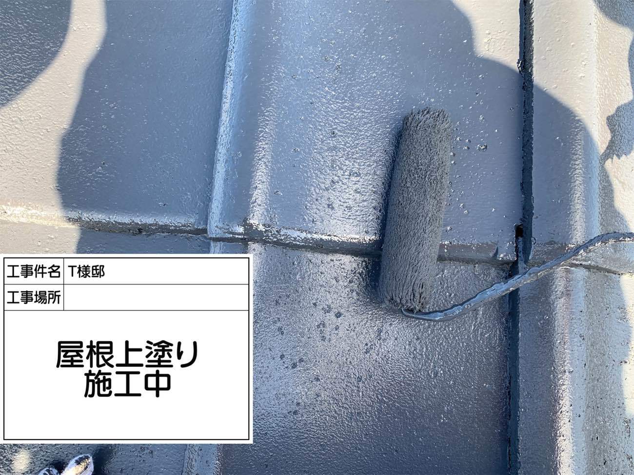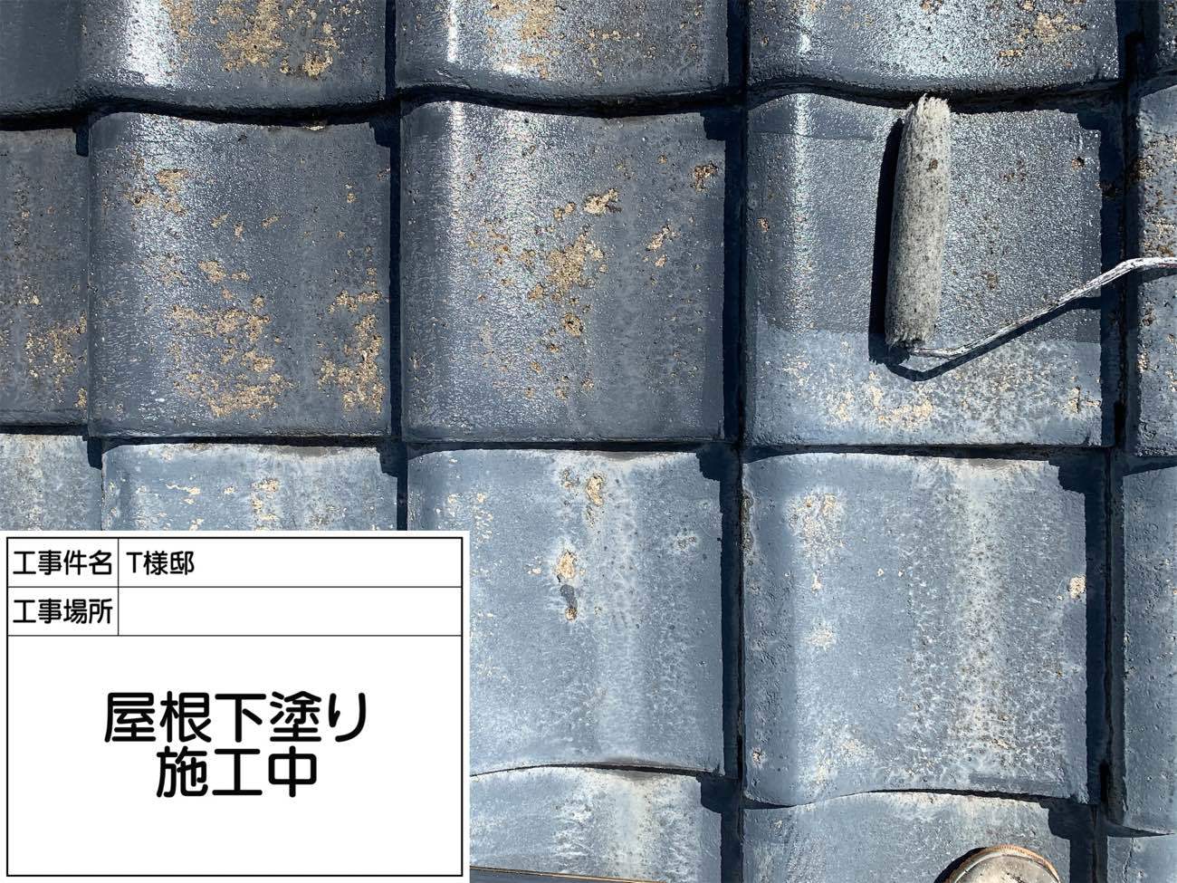 お屋根の下塗りをします。 下塗りをすることで、塗料の密着度を高める事が出来ます。