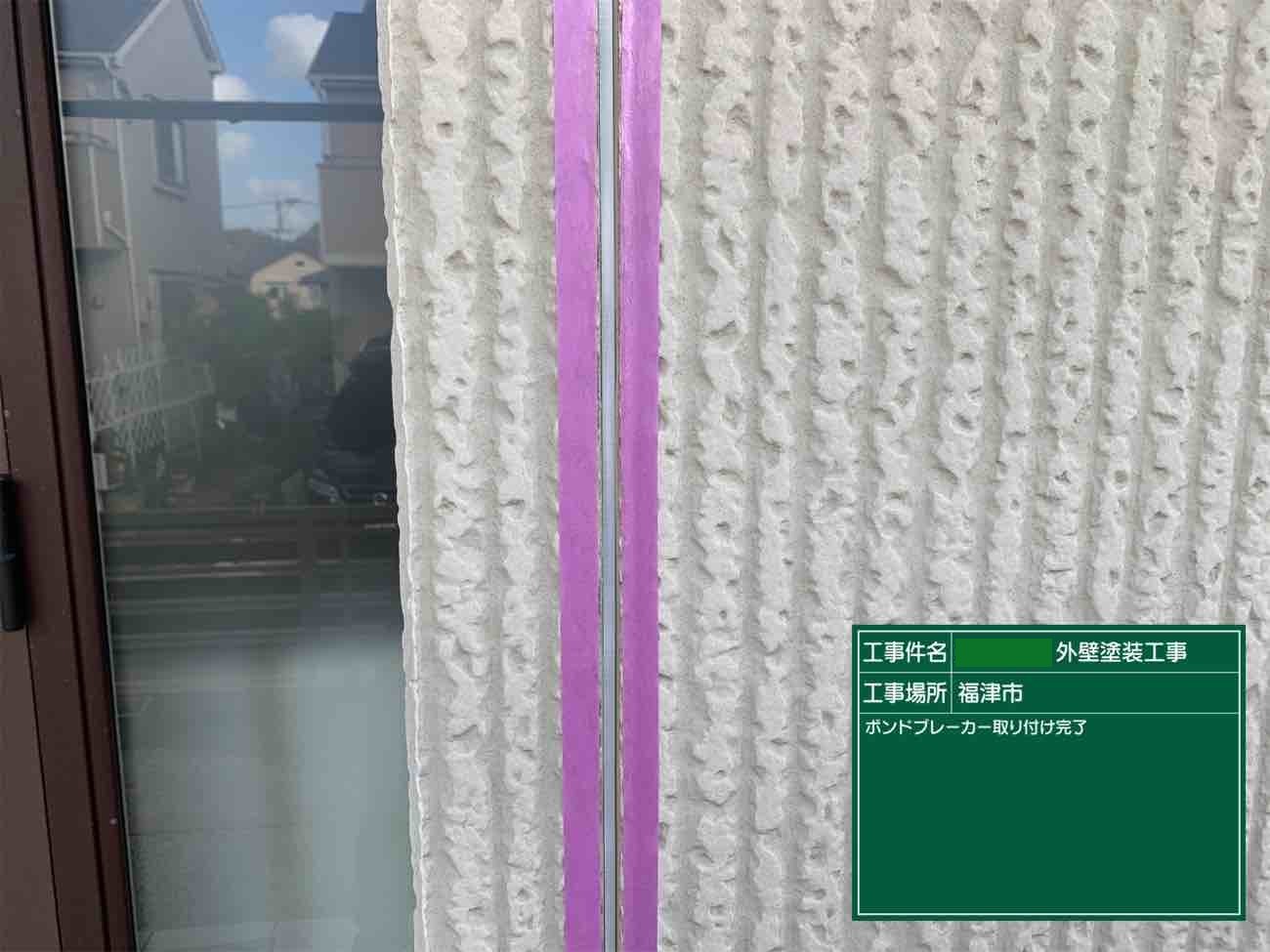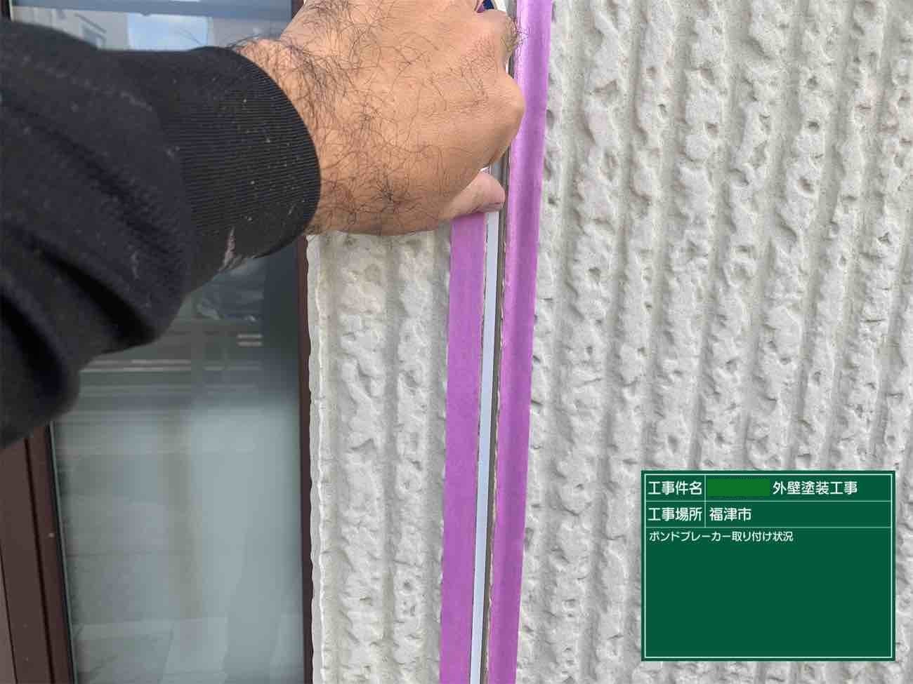 シーリングの3面接着を防ぐためにボンドブレーカーを接着していきます。