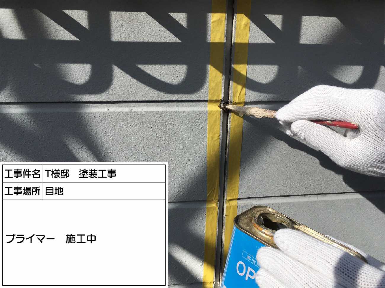 プライマーは接着を促すものです。目地に塗っています。