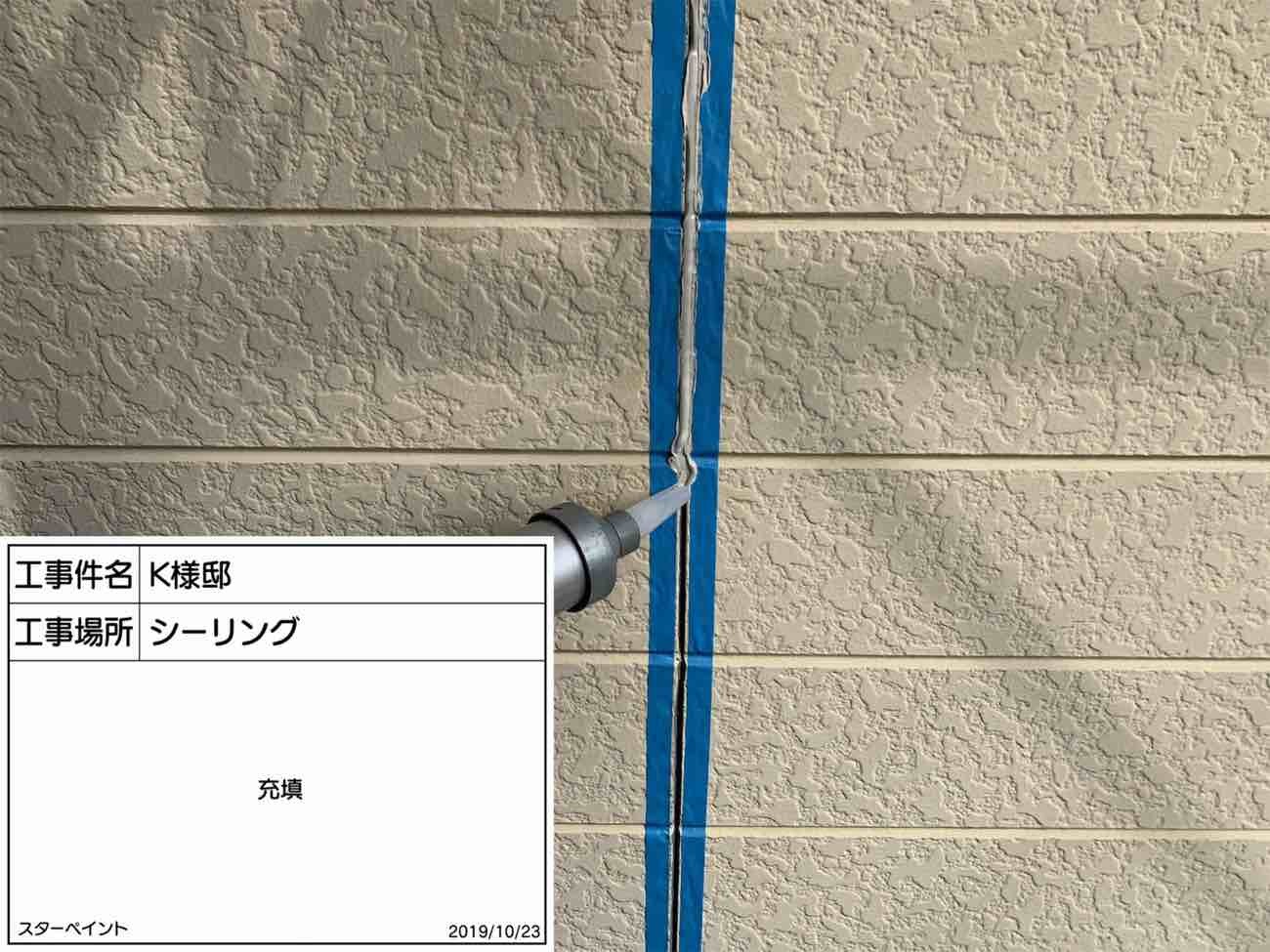 シーリングを充填している様子です。
