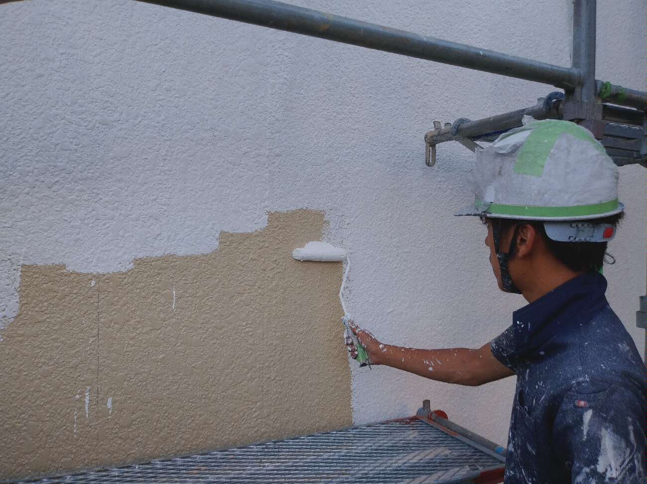 仕上げの上塗り作業は外観はもちろん、耐候性を高めるために重要な作業です。