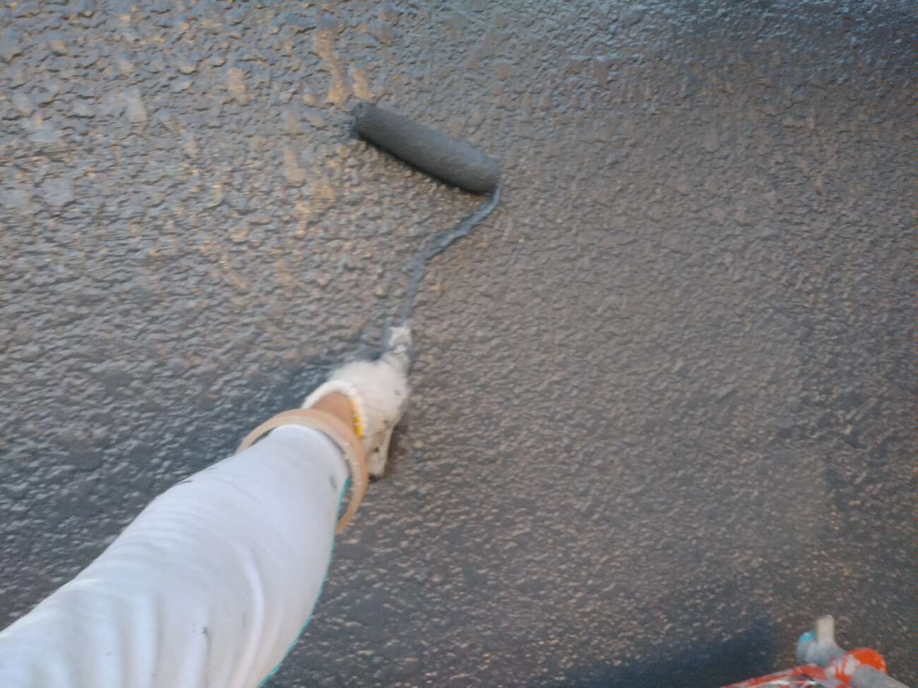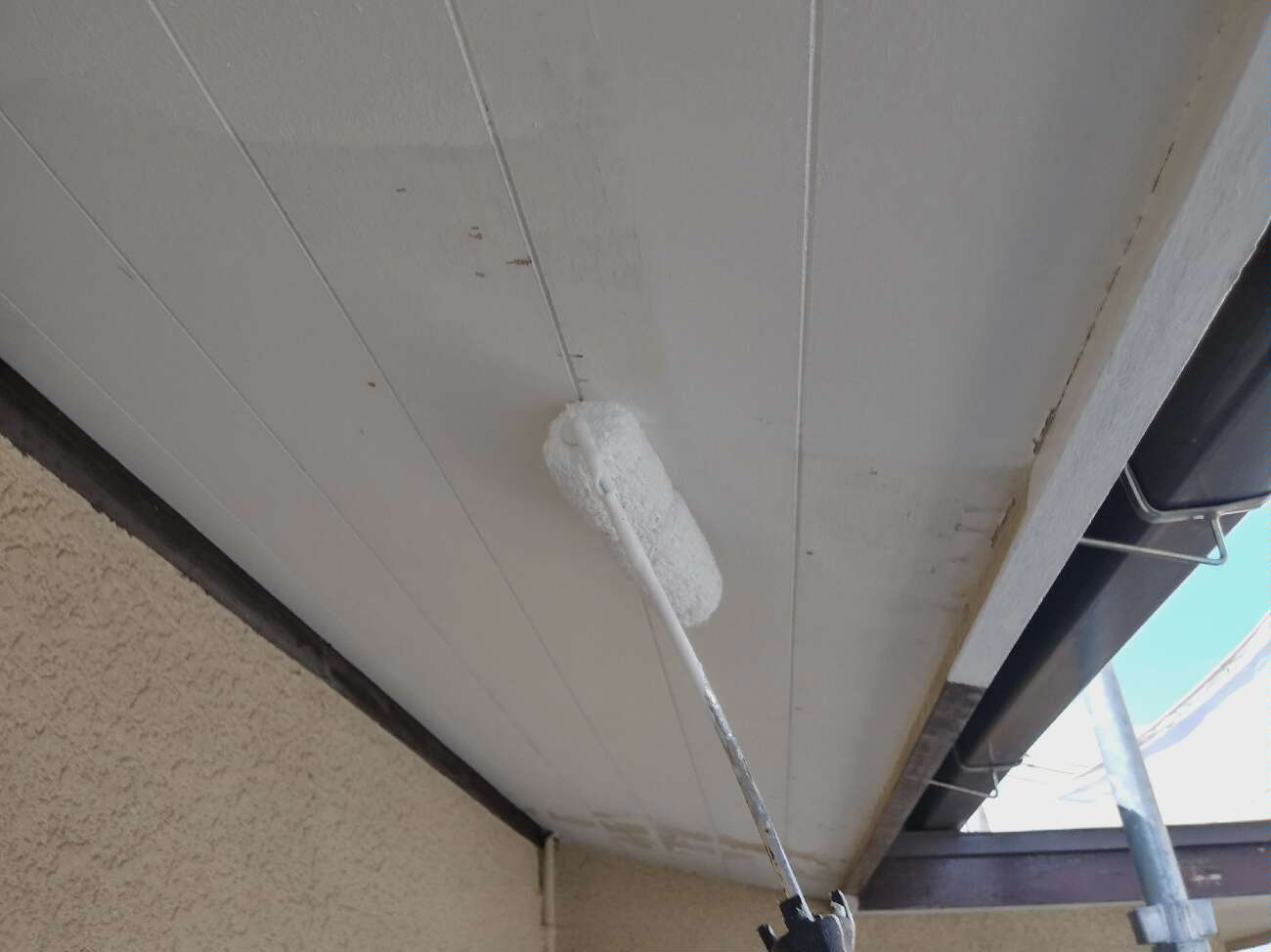 外壁同様中塗りで塗膜に厚みをもたせます。