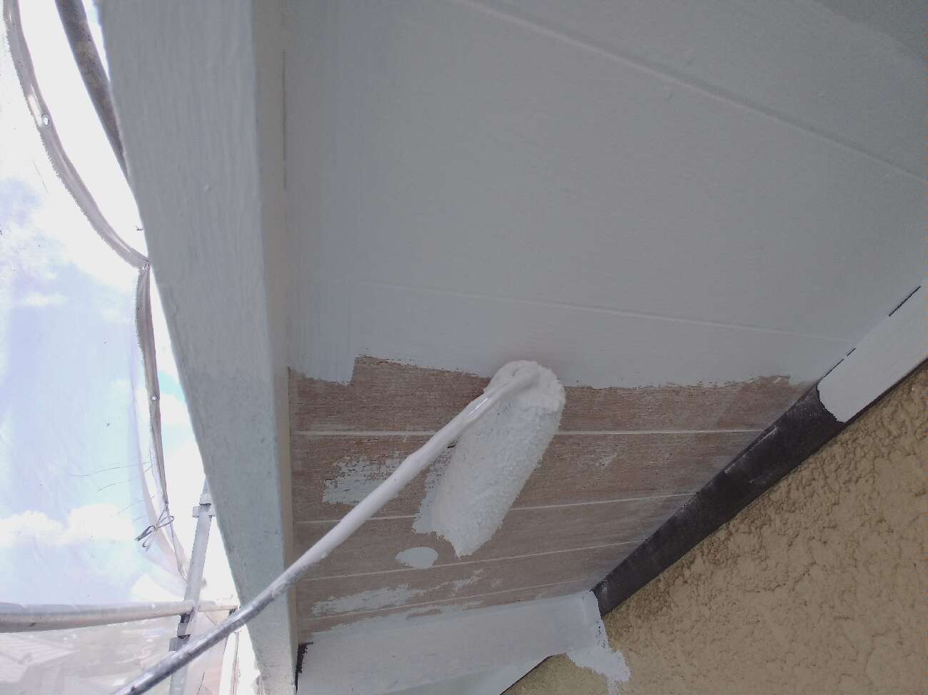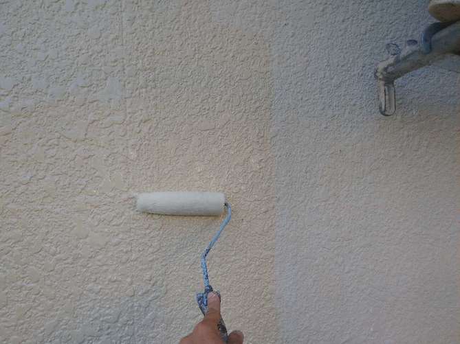 外壁の下塗りに入ります。 中塗り塗料との密着度を高め塗膜剥離の原因を防ぎます。