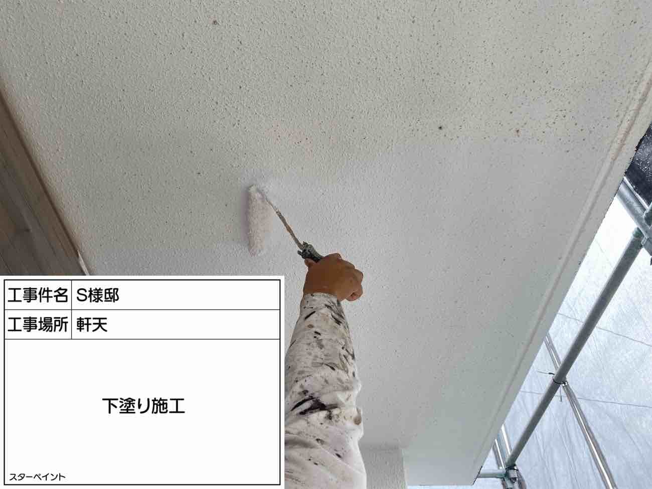 軒天はまず下塗りを行います。