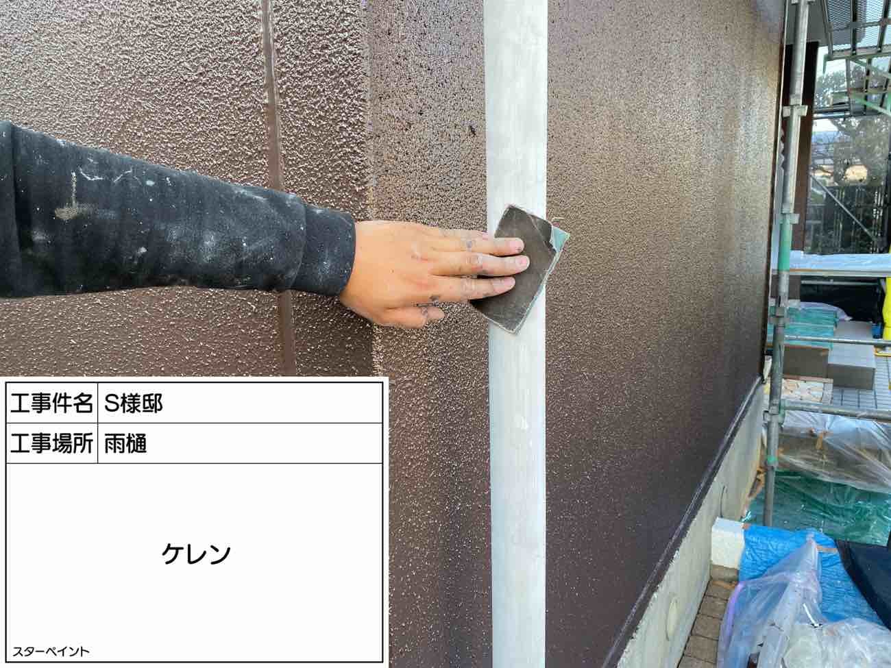 雨樋をケレン作業で汚れを落とします。