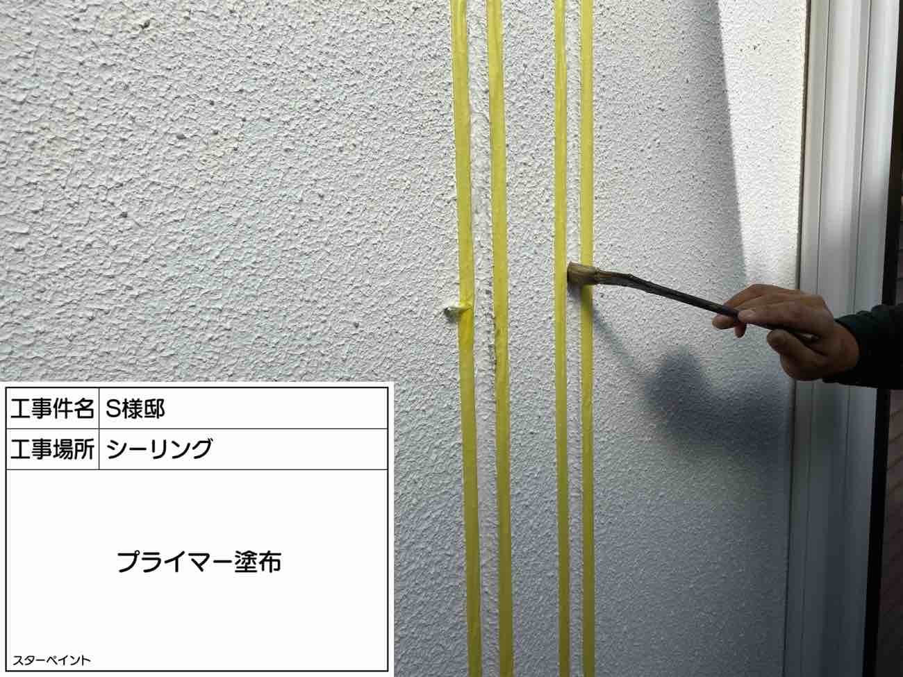 シーリングを目地と接着する役割を担うプライマーを塗布していきます。