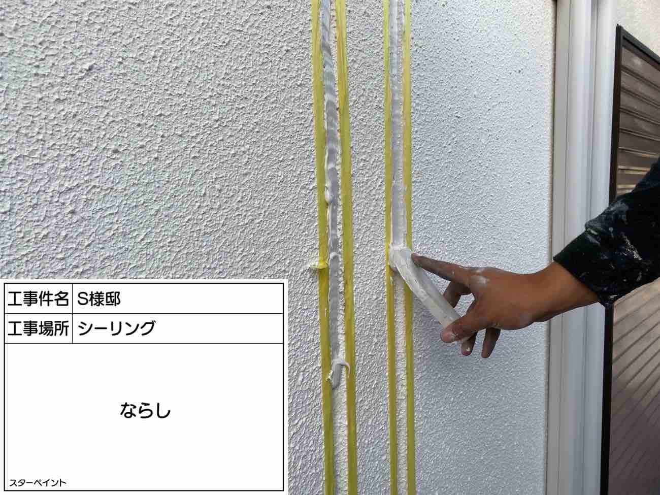 充填したシーリングが目地に均一に埋まっていくよう綺麗にならしていきます。