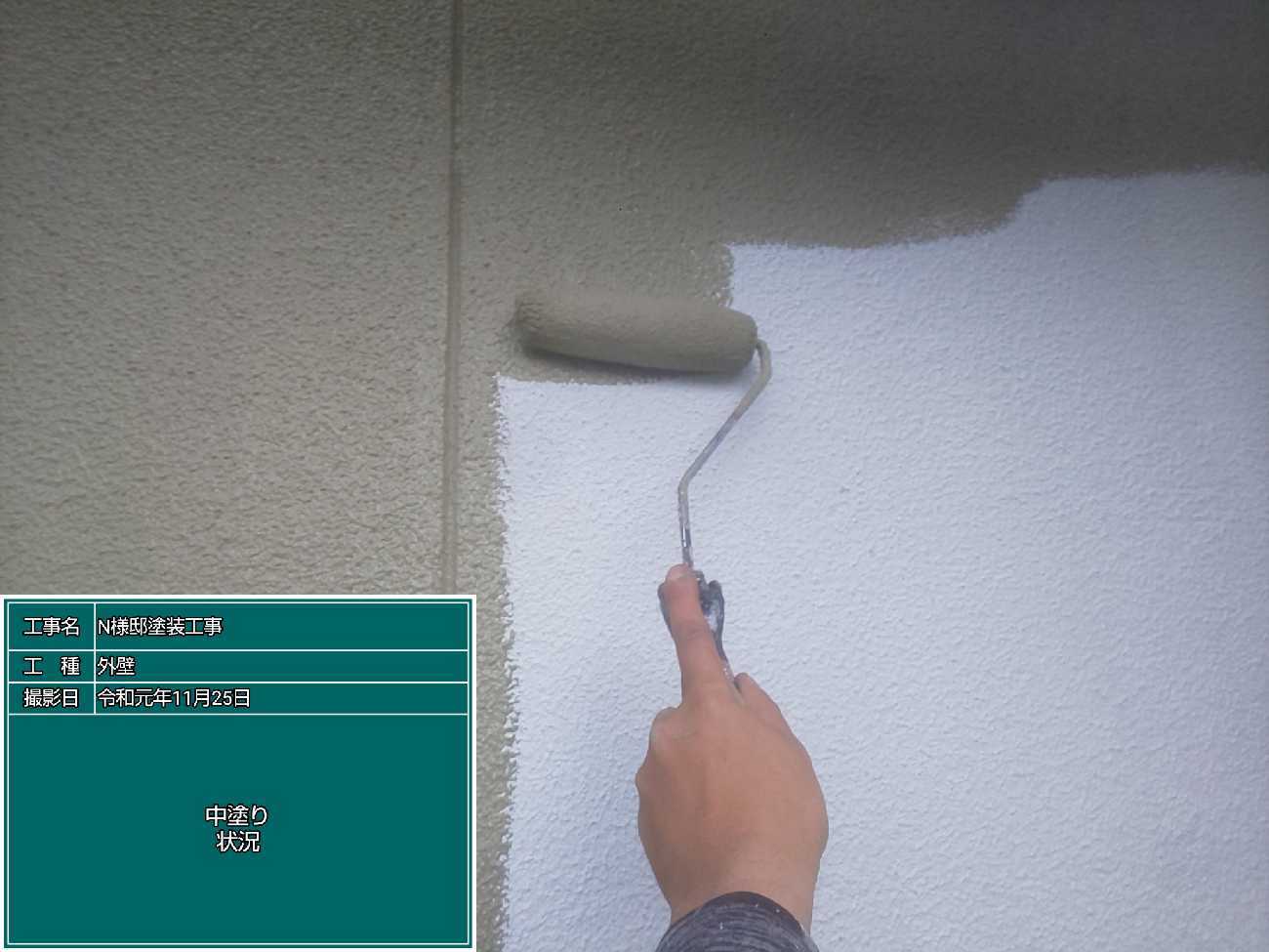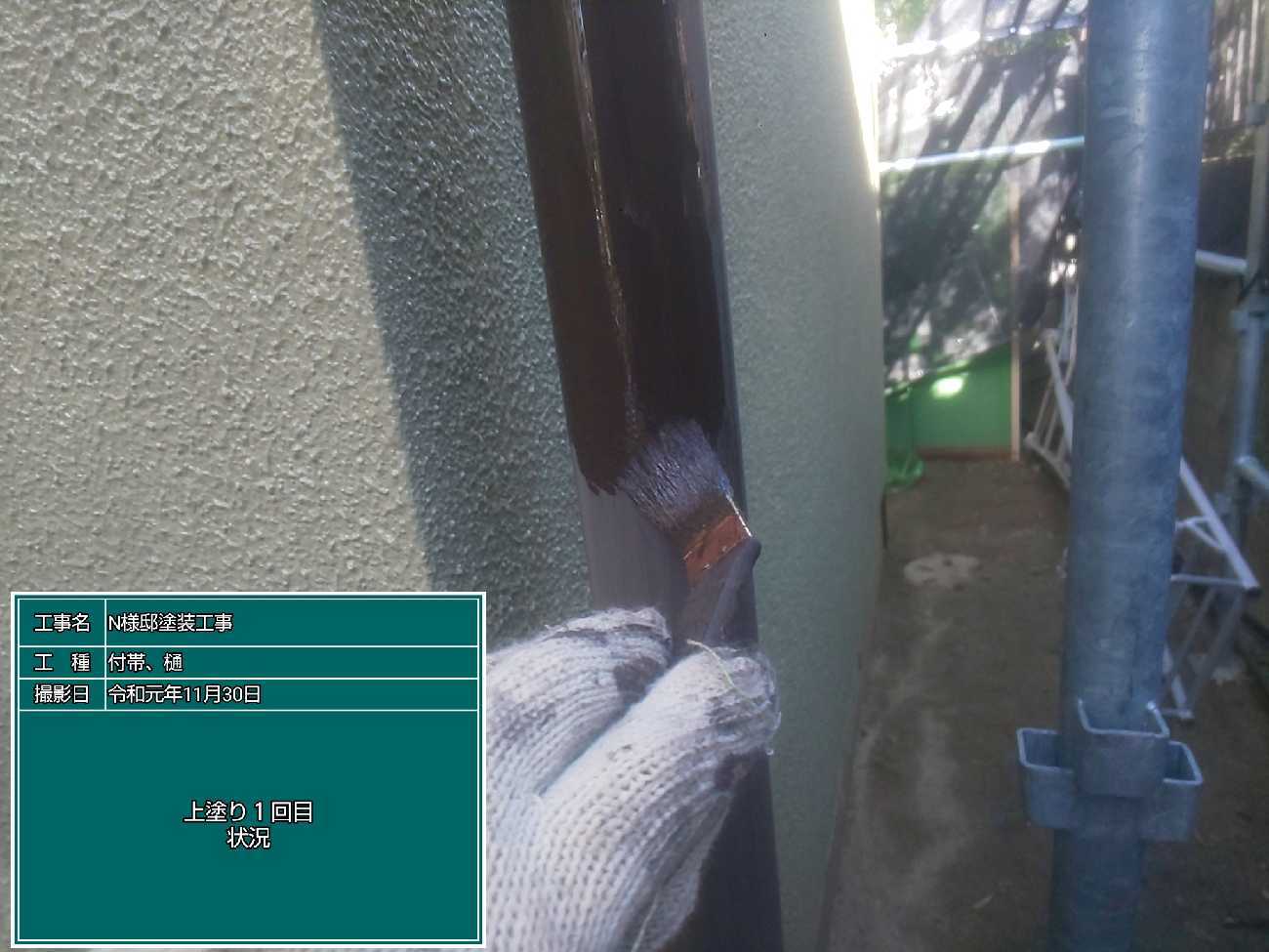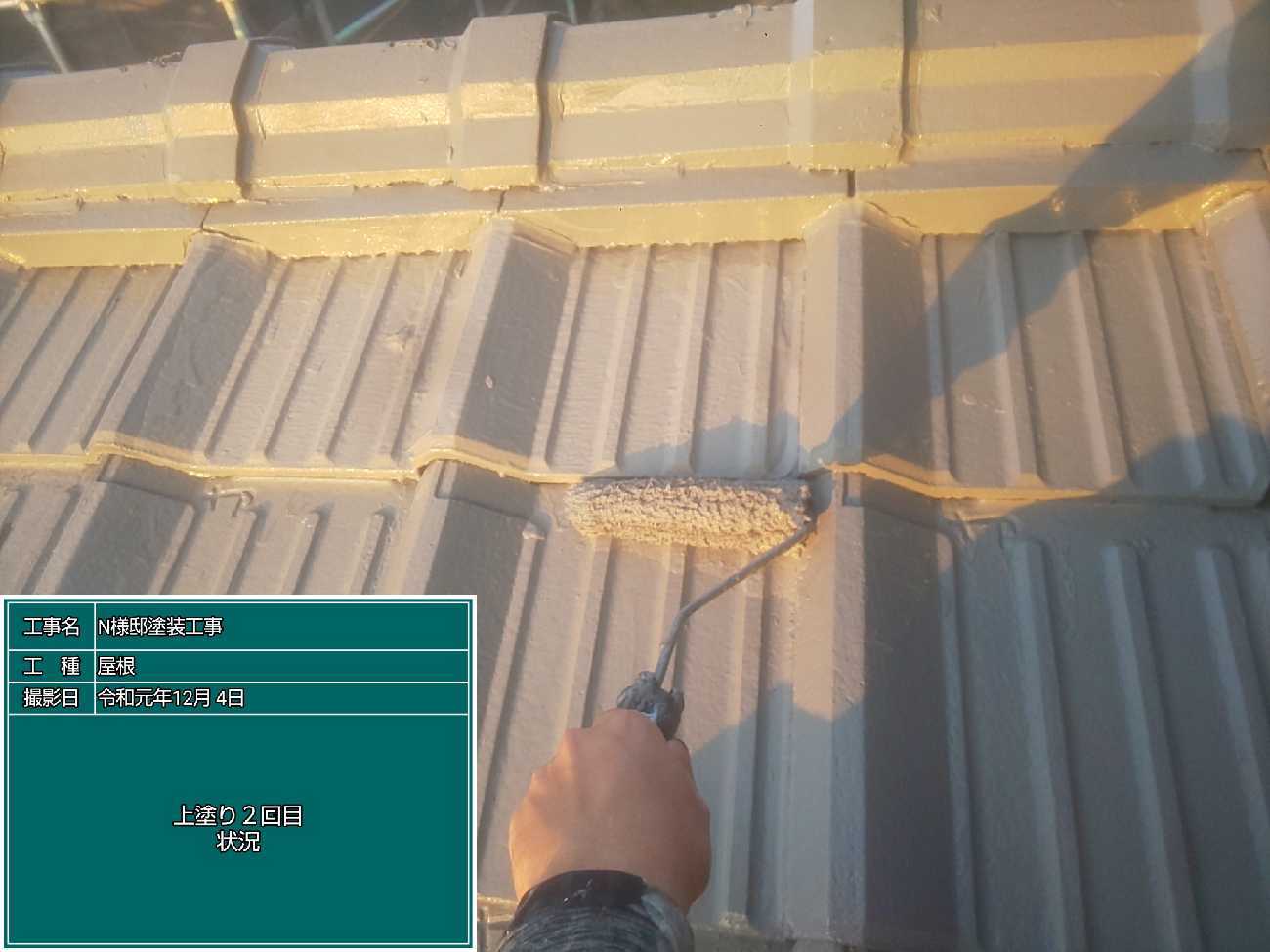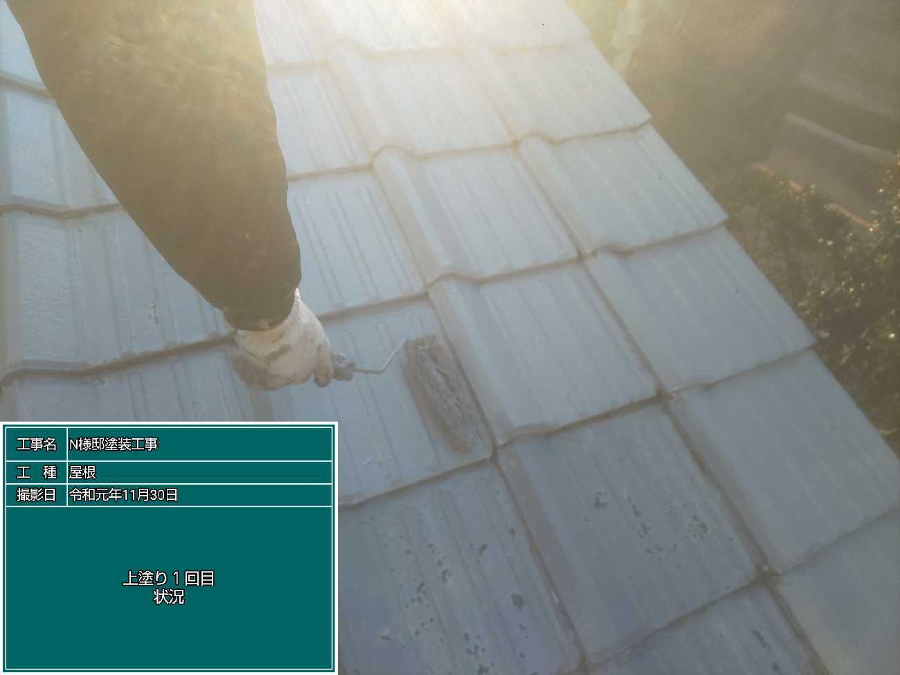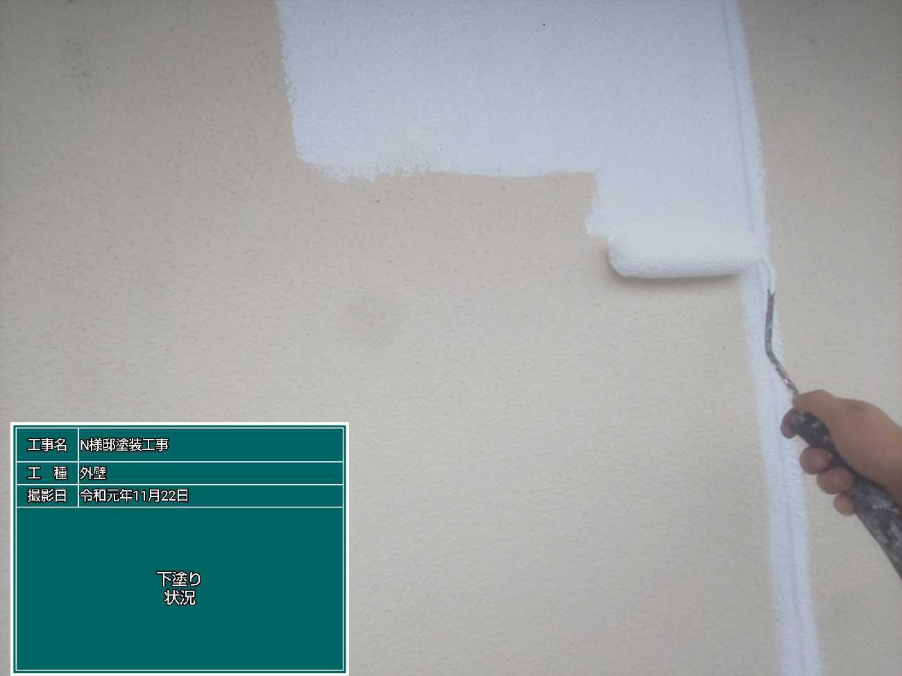 一回目の上塗りでは塗装に厚みを出し紫外線から下地を守る効果をもたせます。