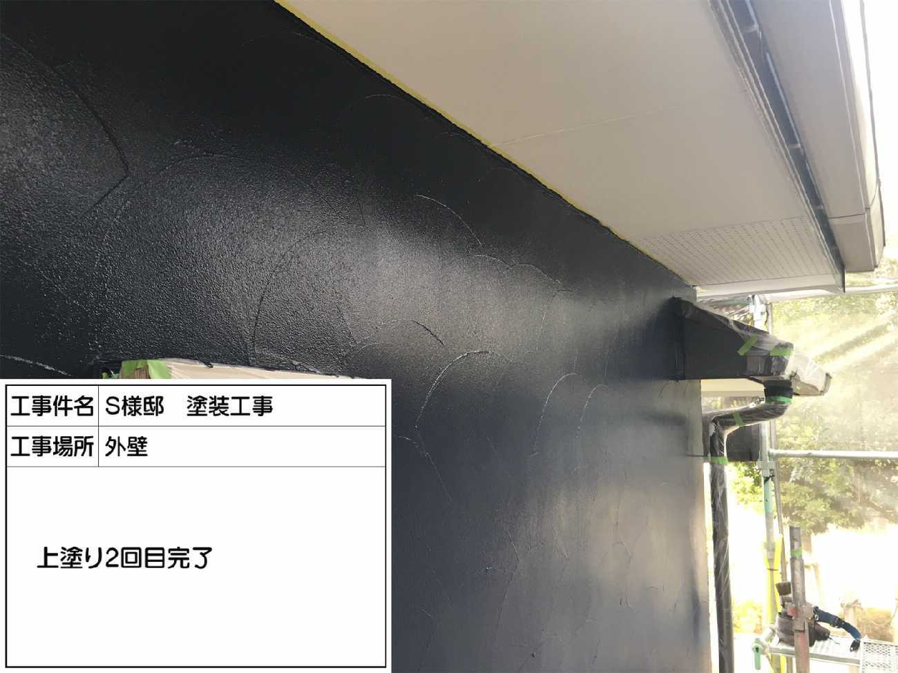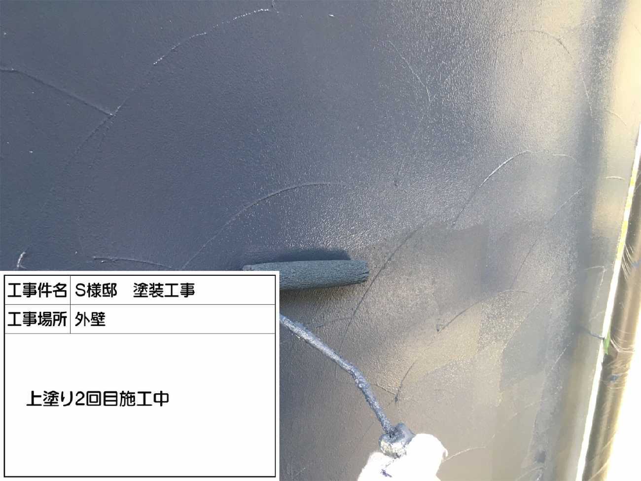 上塗り二回目を行います。 外壁も綺麗に塗っておかないと雨漏りの原因に繋がる可能性も ありますのでしっかり綺麗に丁寧に塗っていきます。