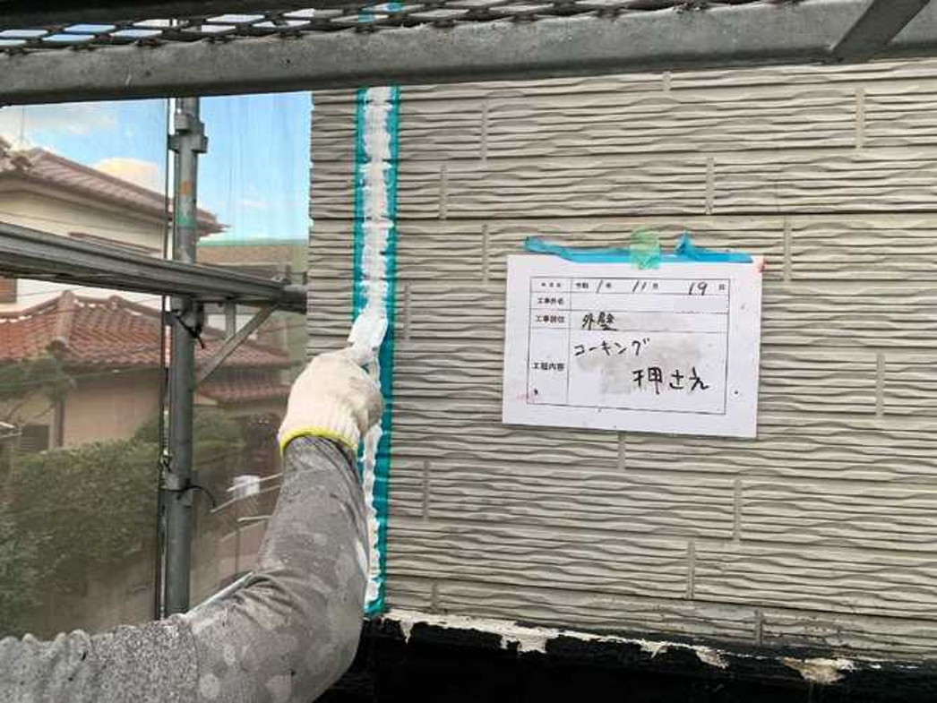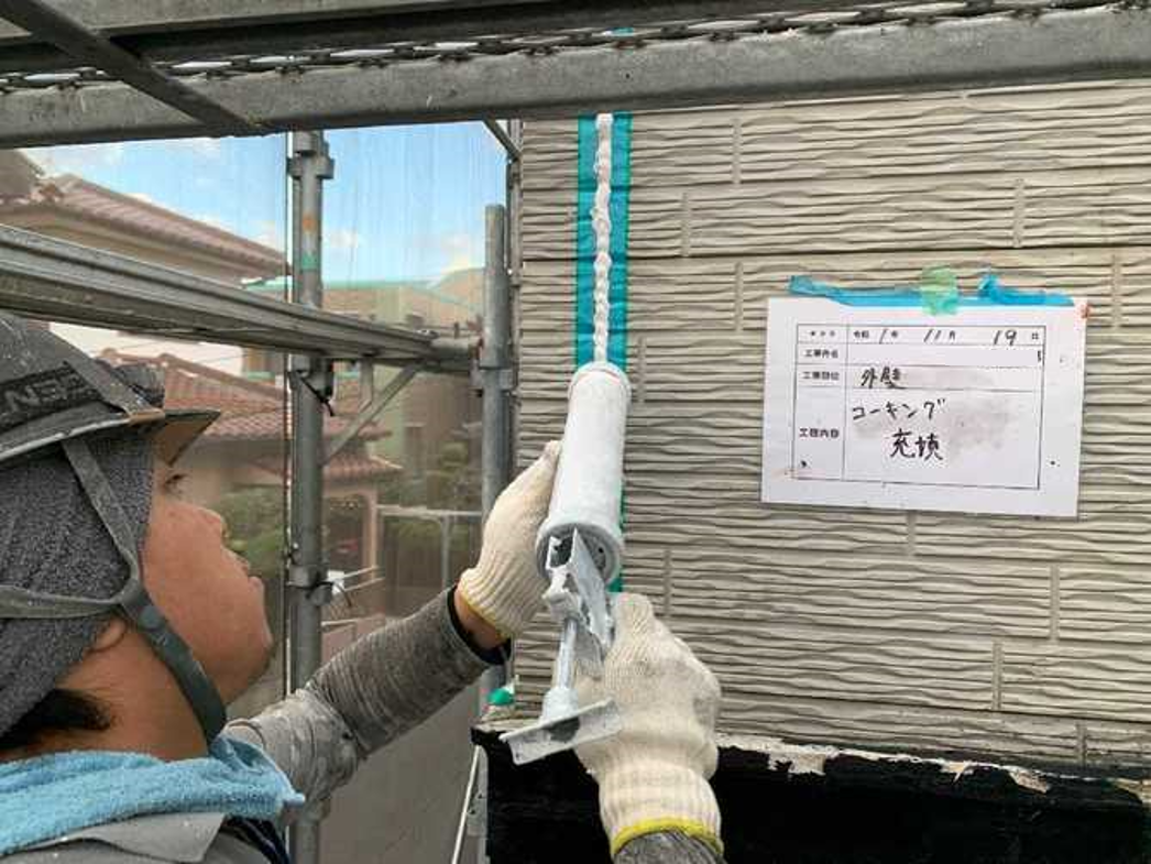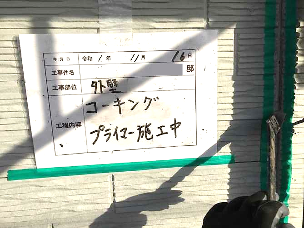 新しいコーキング材との密着度を高めるため、下地材を塗っていきます