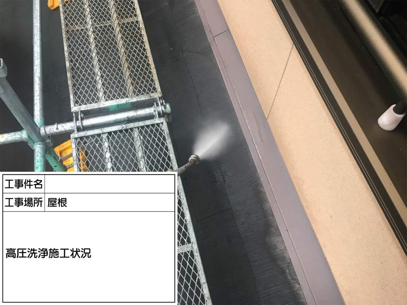 屋根も同じように高圧洗浄で汚れを落としていきます。